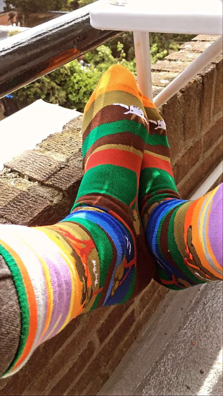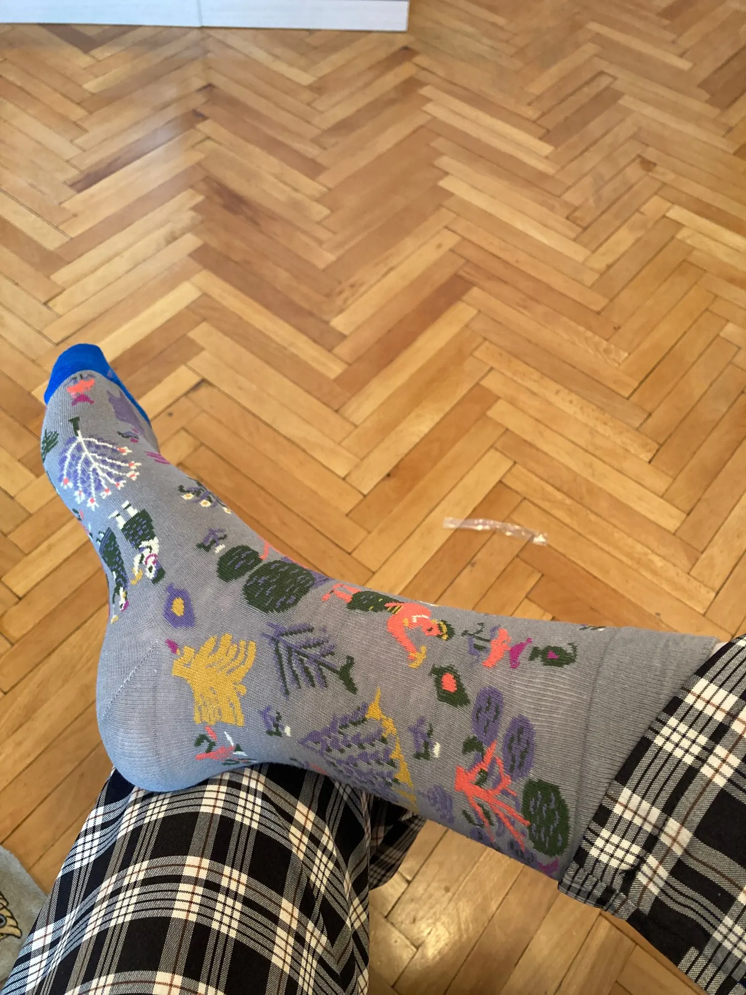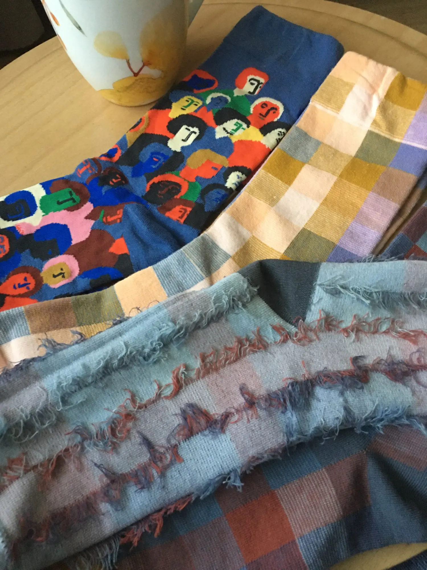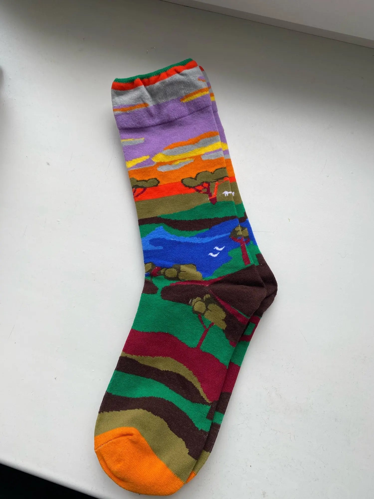 Очень доволен носками. Как описано и еще красивее. Ткань пухлая, а верхняя часть резины занимает самую толстую ткань, поэтому она усилена. Рисунки замечательные. Я обязательно куплю больше для себя и моей семьи и для теги за его оригинальность
