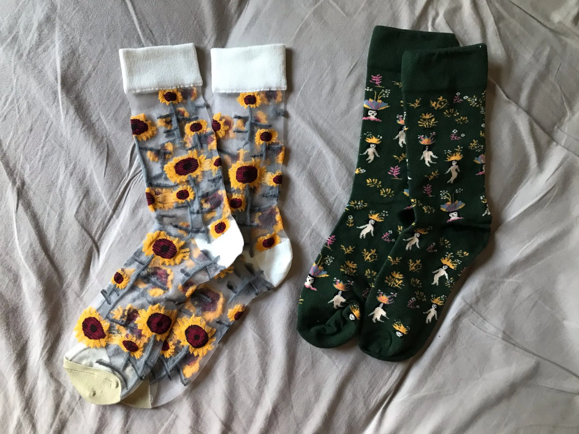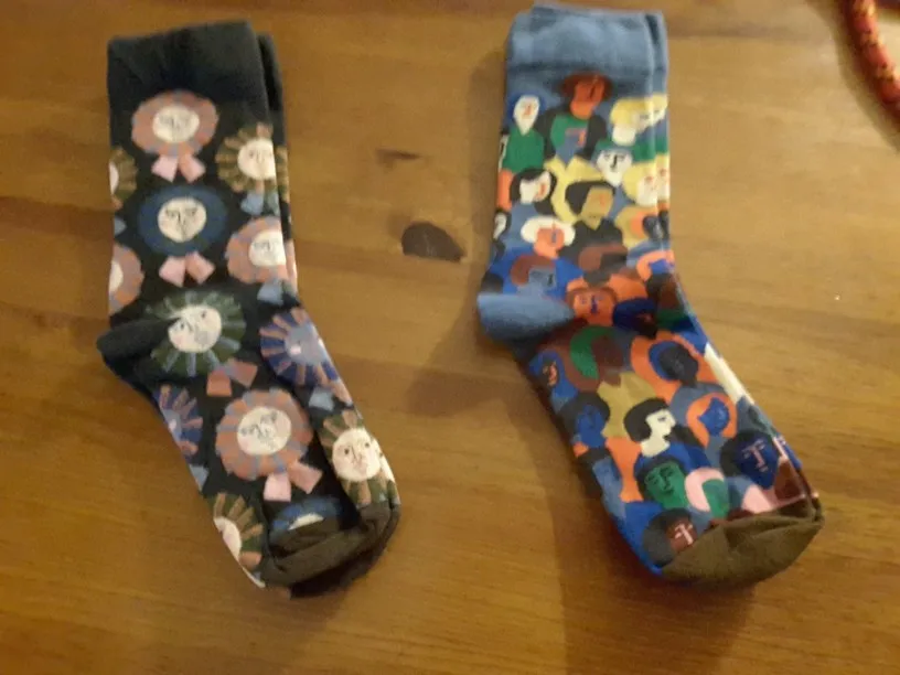 Носки такие же, как в описании и той же модели. Еще красивее лично. Очень доволен ими и они качественные. Я куплю больше количества и с другими рисунками. Я рекомендую 100%, но это заняло больше времени, чем я ожидал, но оно того стоило, потому что они милые.