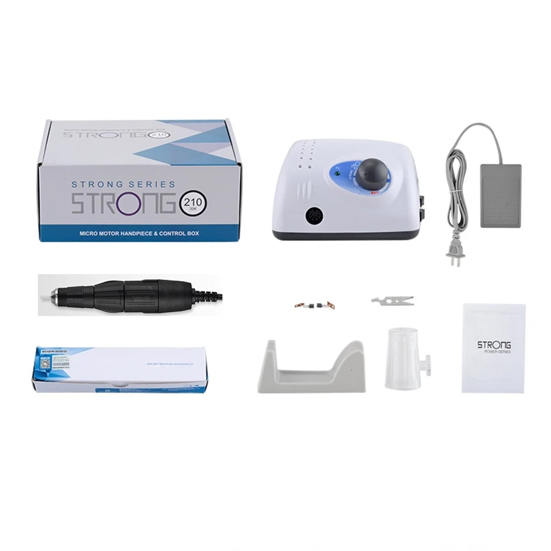 Фрезер Strong 210 Электрический с ручкой 102L для полировки ногтей, аппарат для Набор для маникюра и педикюра ногтей, 35000 обмин, 65 Вт