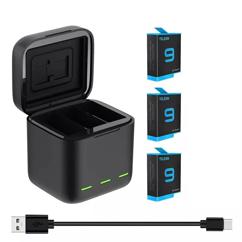 Быстрое зарядное устройство для GoPro 9, 3 слота, коробка для хранения аккумуляторов 1750 мАч, чехол для зарядки аккумуляторов для GoPro Hero 9, аксессуары для камеры