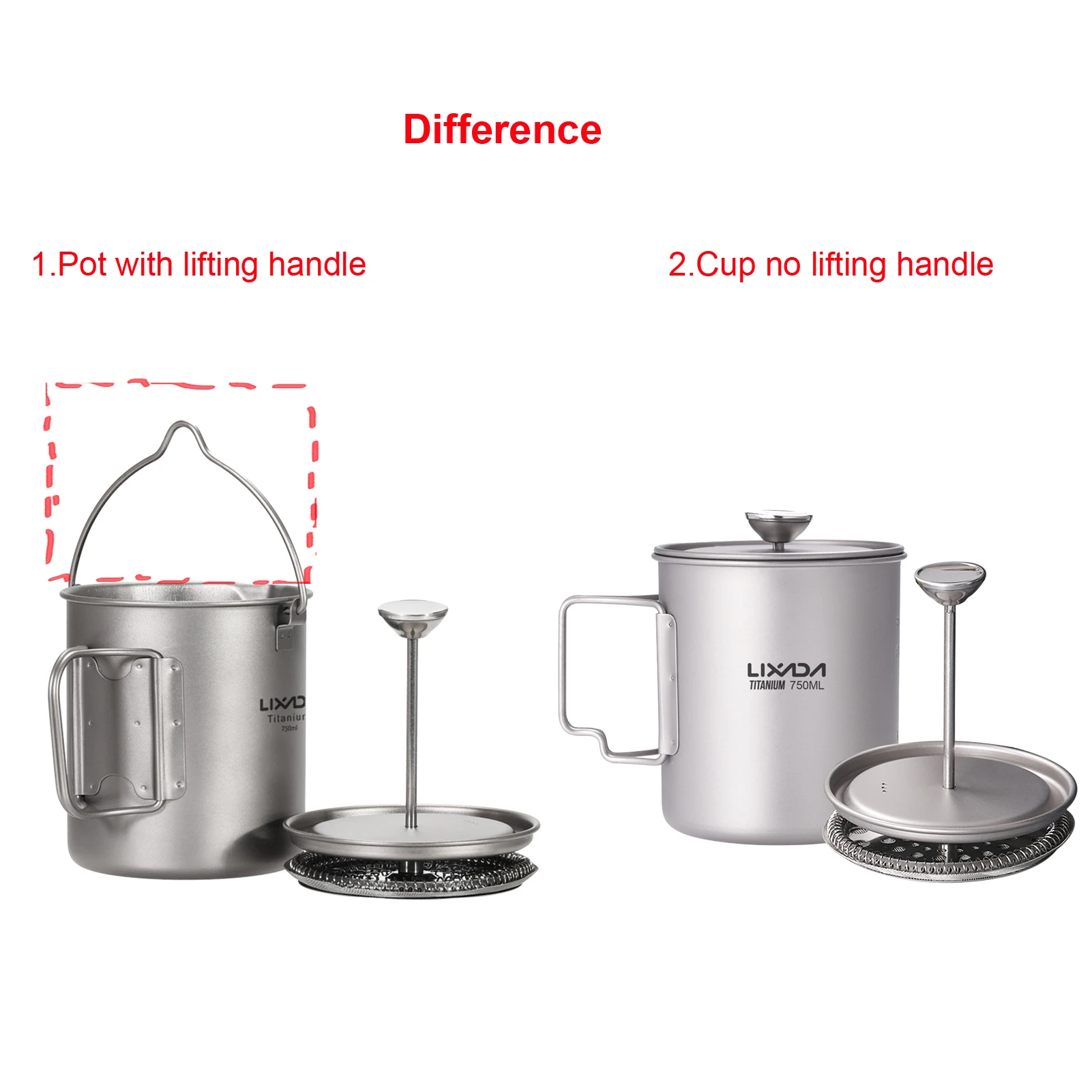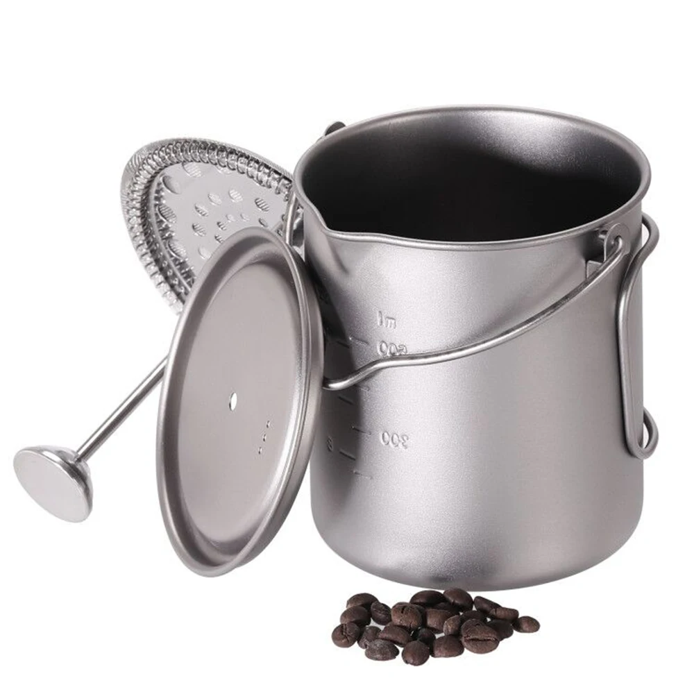 Титановая кофейная кружка Lixada 750 мл, пресс для французского кофе с крышкой, Кружка для походный котелок для варки пищи и кемпинга на открытом воздухе