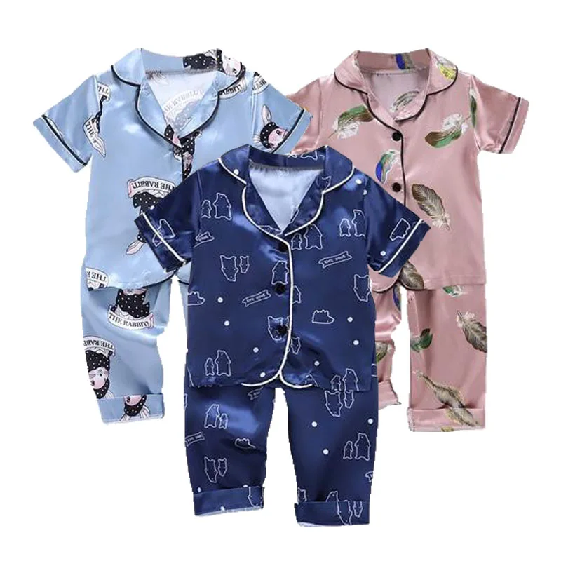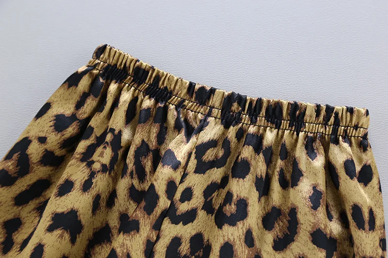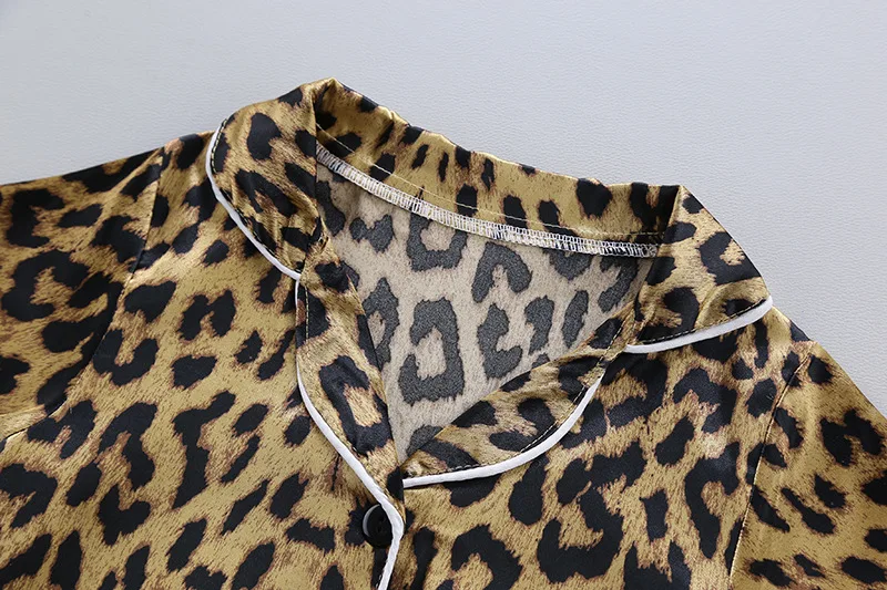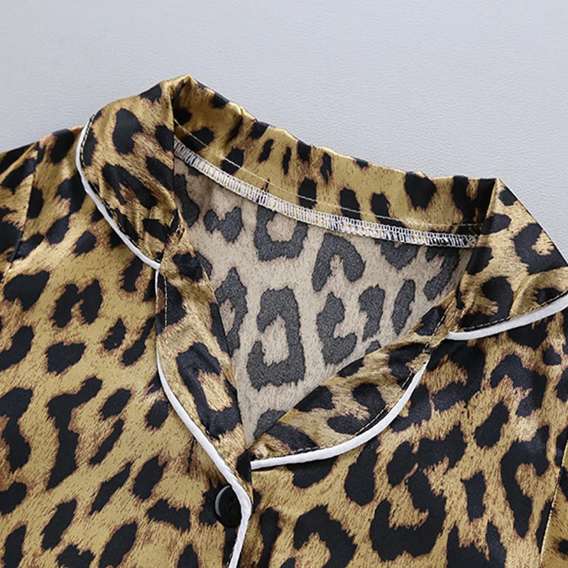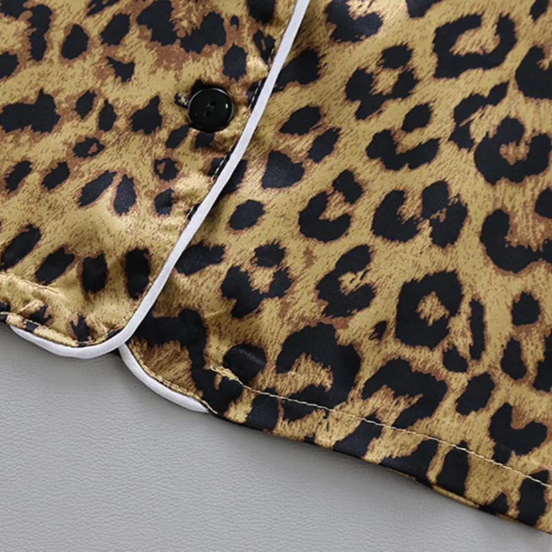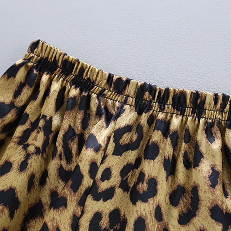 Детские шелковая пижама комплект ночного белья для детей, пижамы для детей, которые начинают ходить, для мальчиков и девочек, одежда с леопардовым рисунком комплект единорог пижамы блуза с коротким рукавом, топы, штаны, одежда для сна