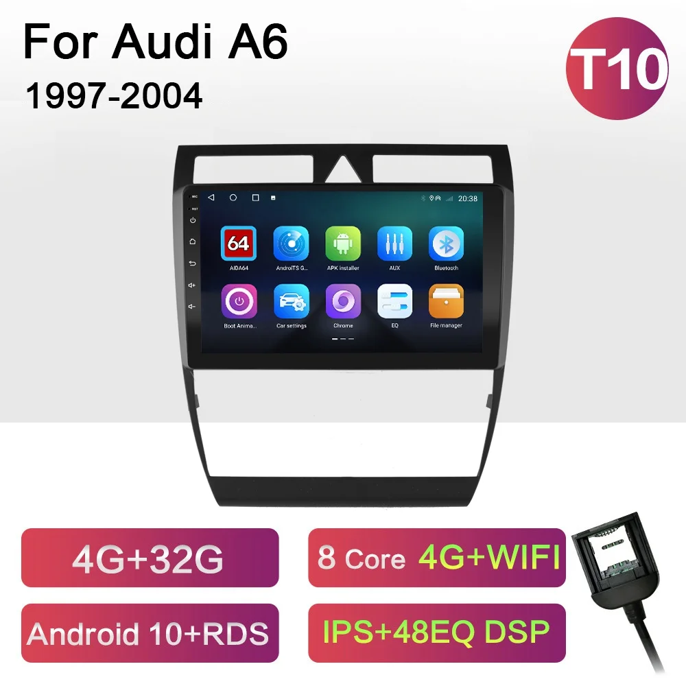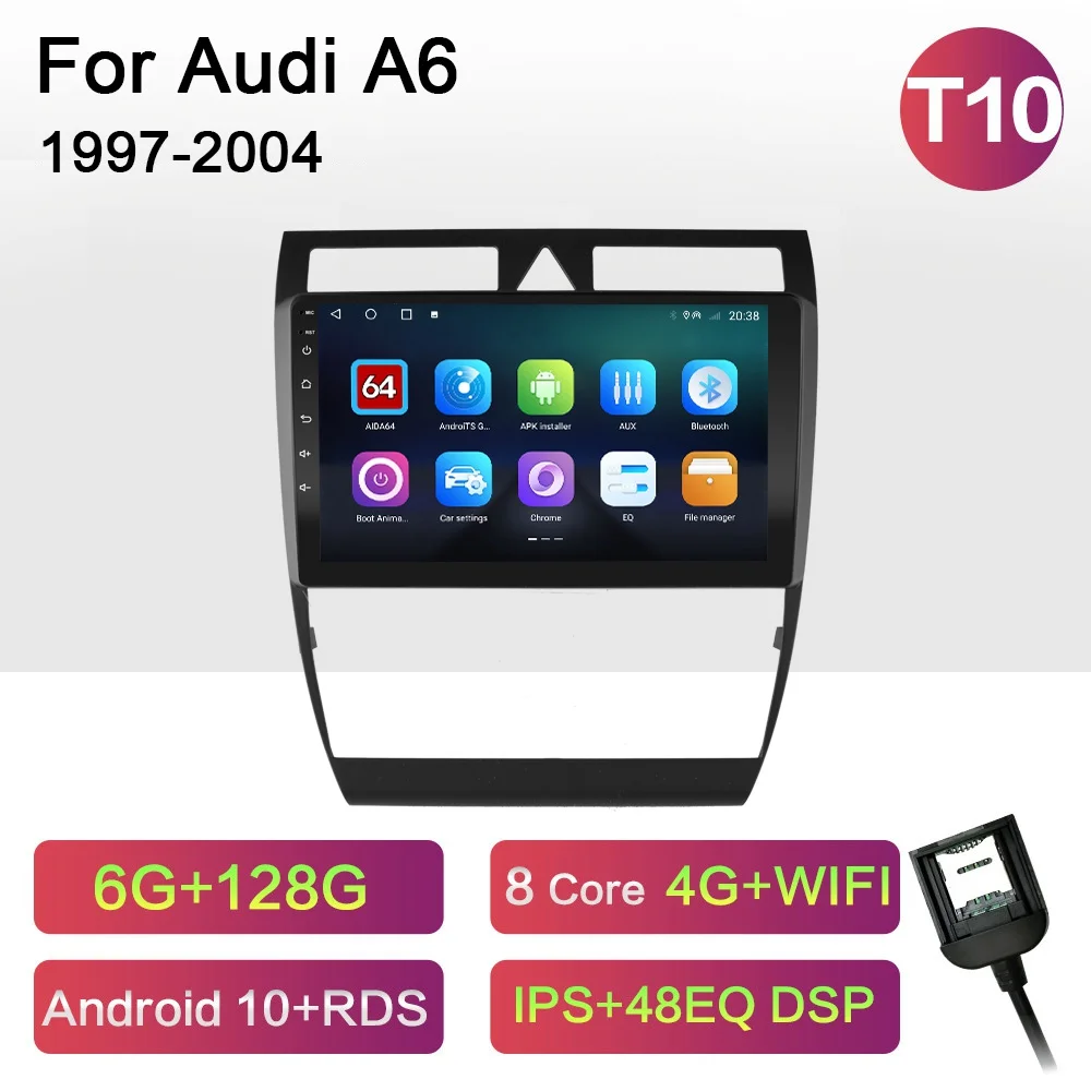 Автомагнитола на Android 10,0 с GPS-навигацией, Wi-Fi, мультимедийный плеер CarPlay для Audi A6 C5 1997-2004 S6 RS6 DSP RDS IPS, без DVD, 2din