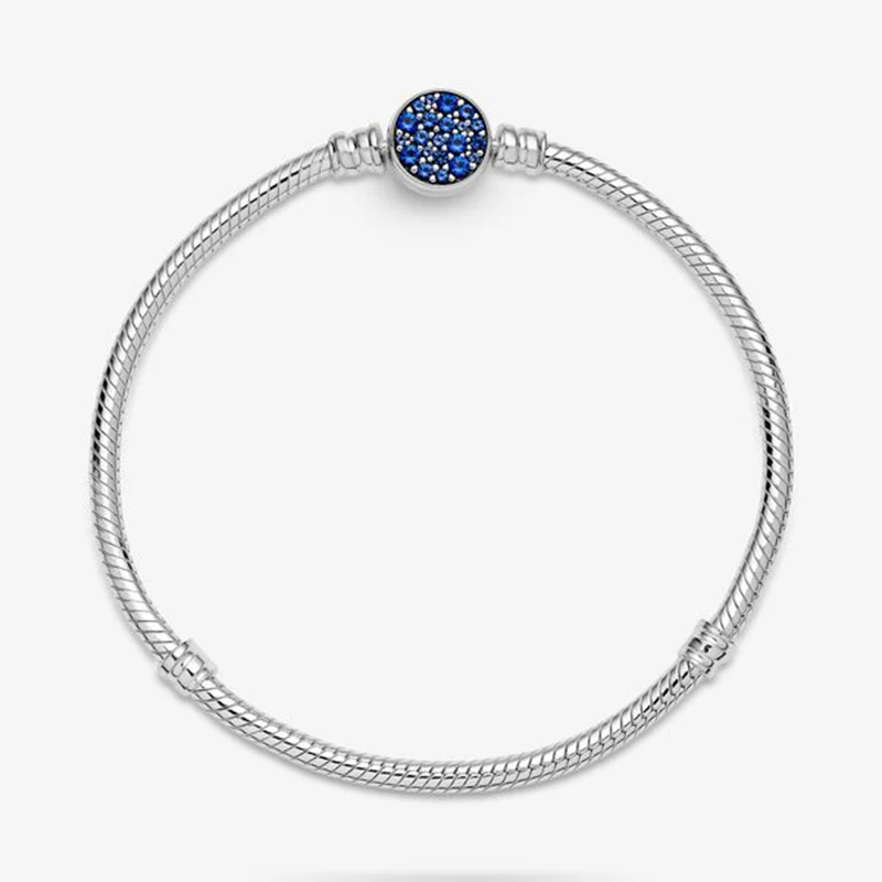 Новый S925 серебро Цвет блеск синий браслет цепочка из змеиных костей, подходят к оригиналу Pandora, очаровательный для женщин Роскошные ювелирные изделия