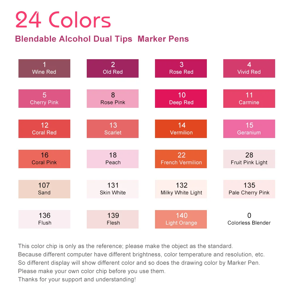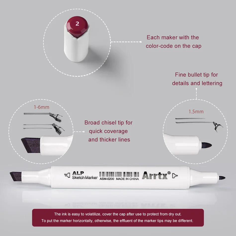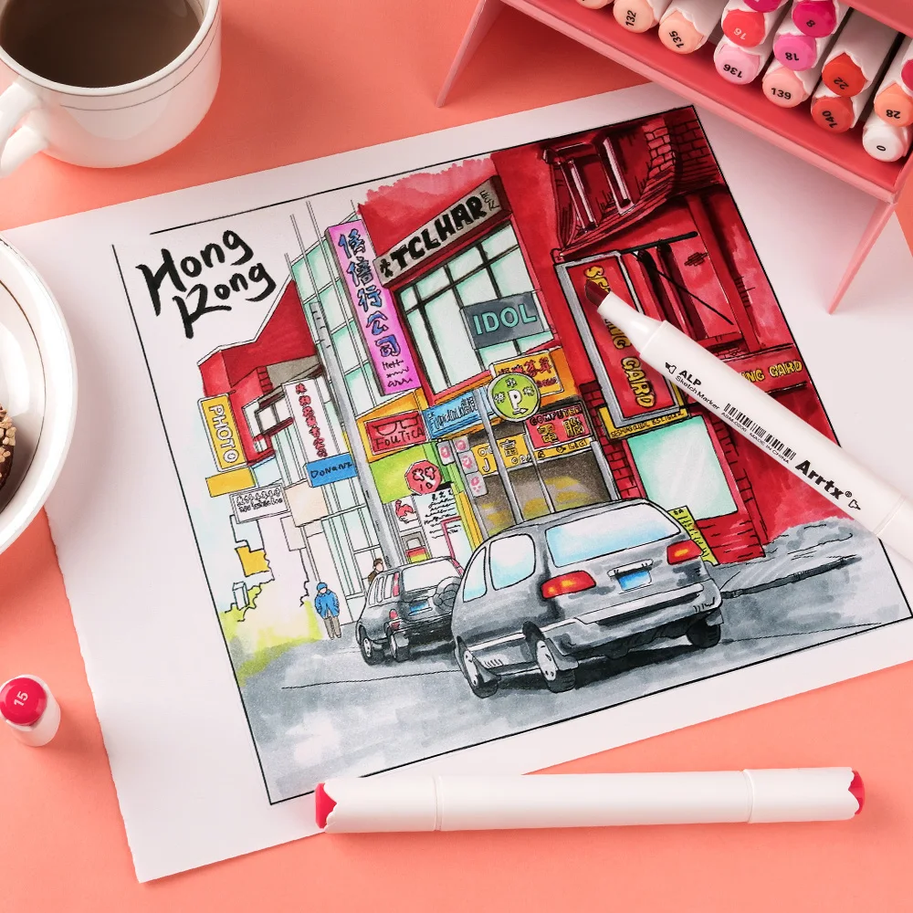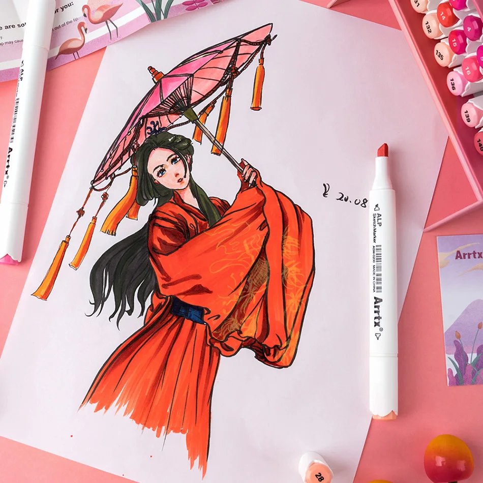 Художественные маркеры Arrtx ALP, 24 красных цвета, двусторонние скетч-маркеры на спиртовой основе с чернилами, товары для рукоделия