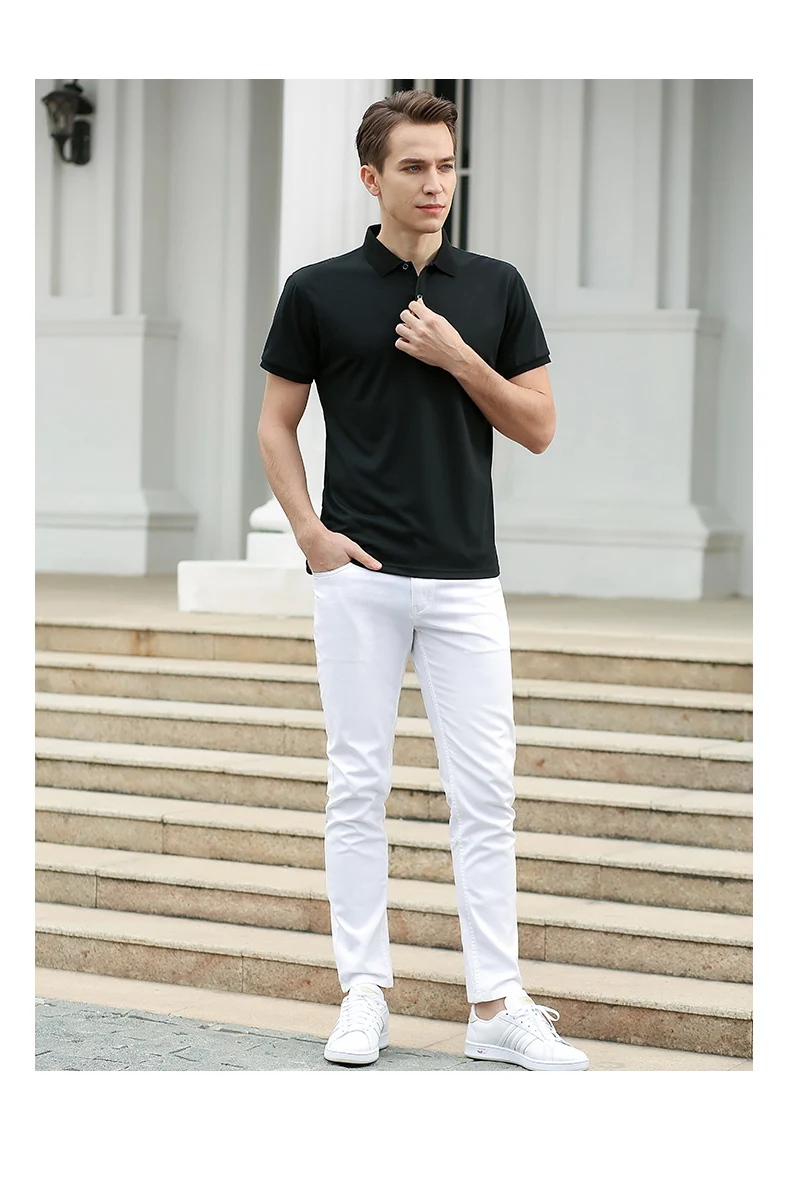 Мужская рубашка-поло с короткими рукавами, однотонная приталенная рубашка-поло в деловом повседневном стиле, лето 2021