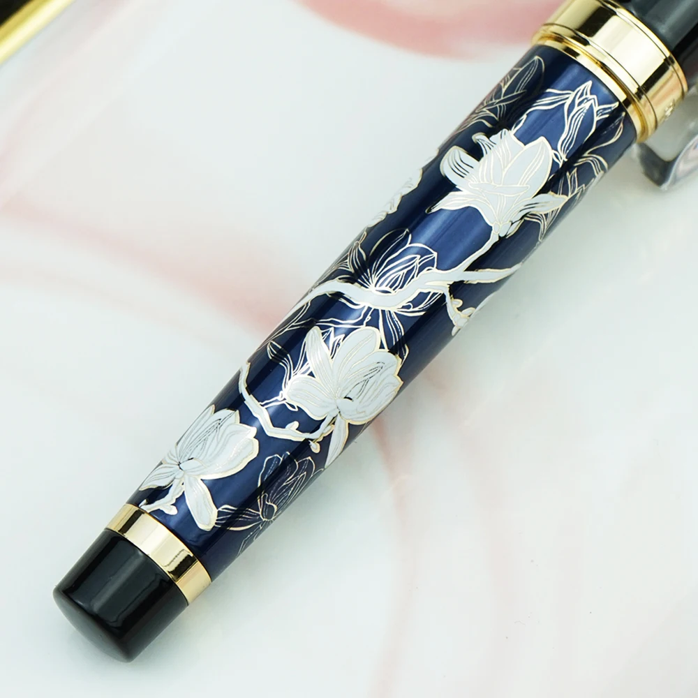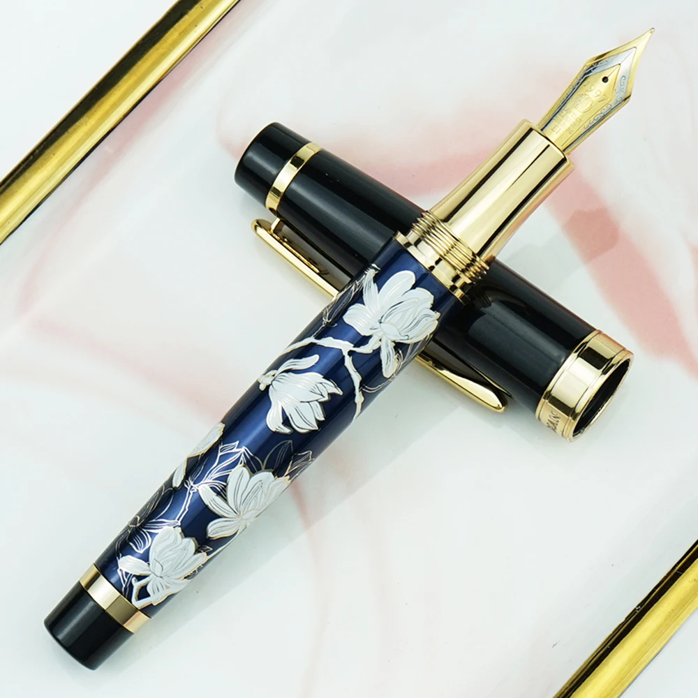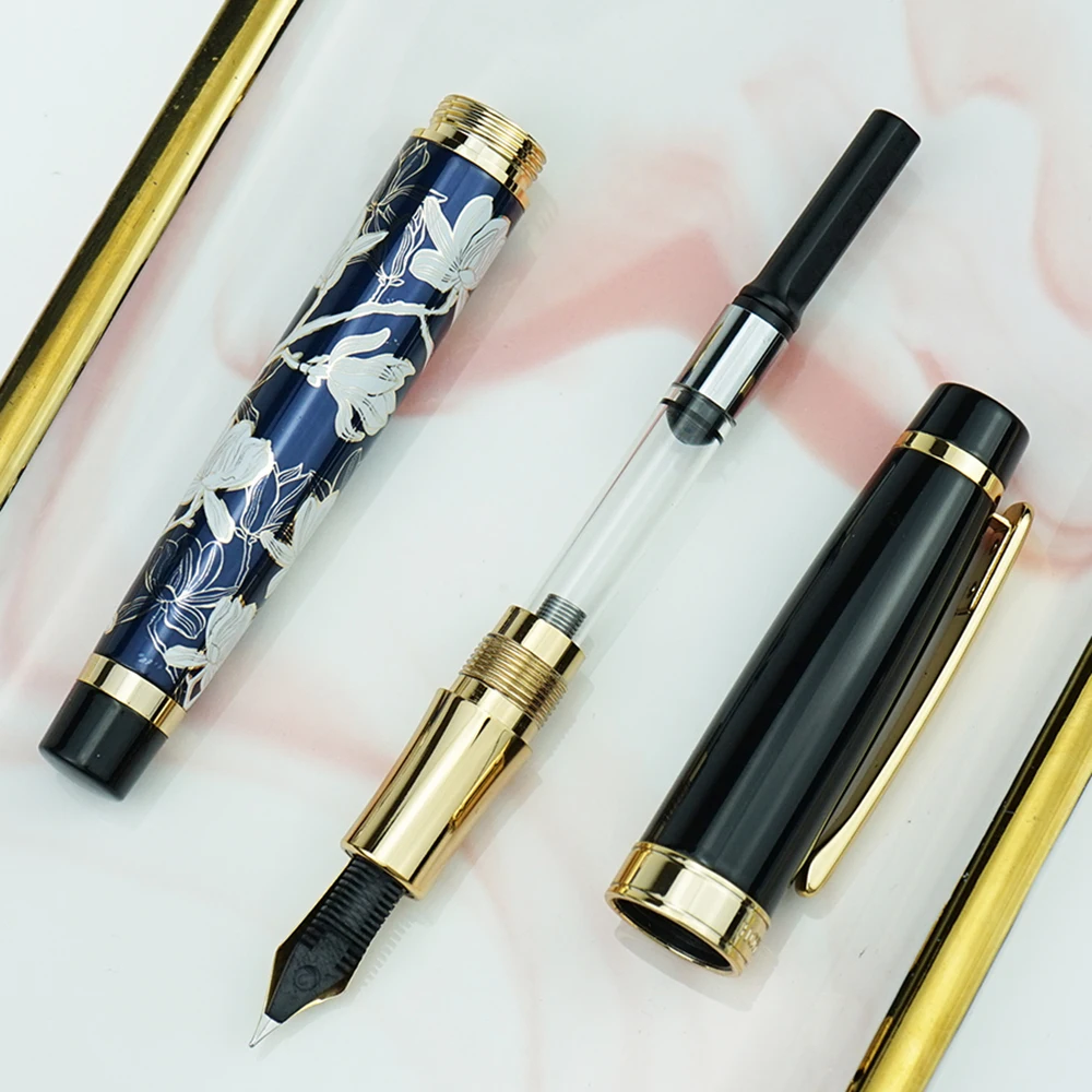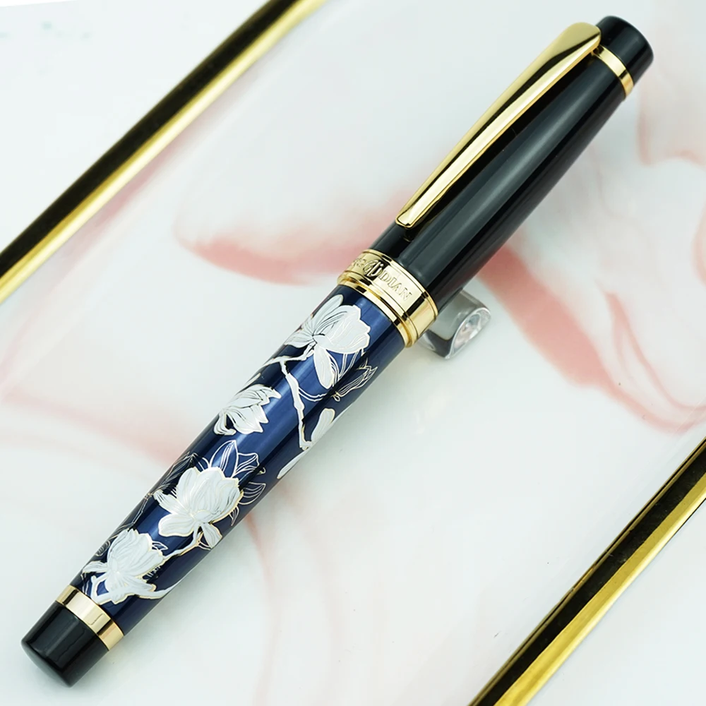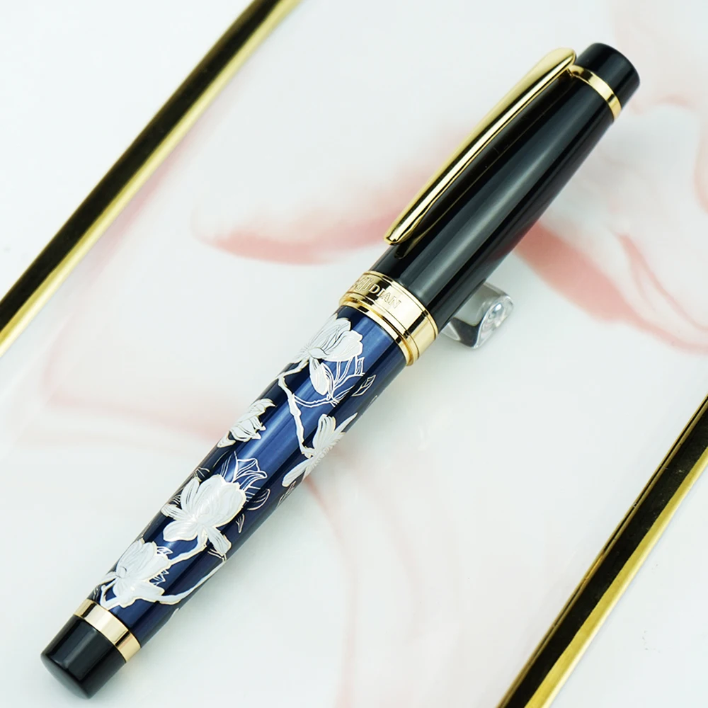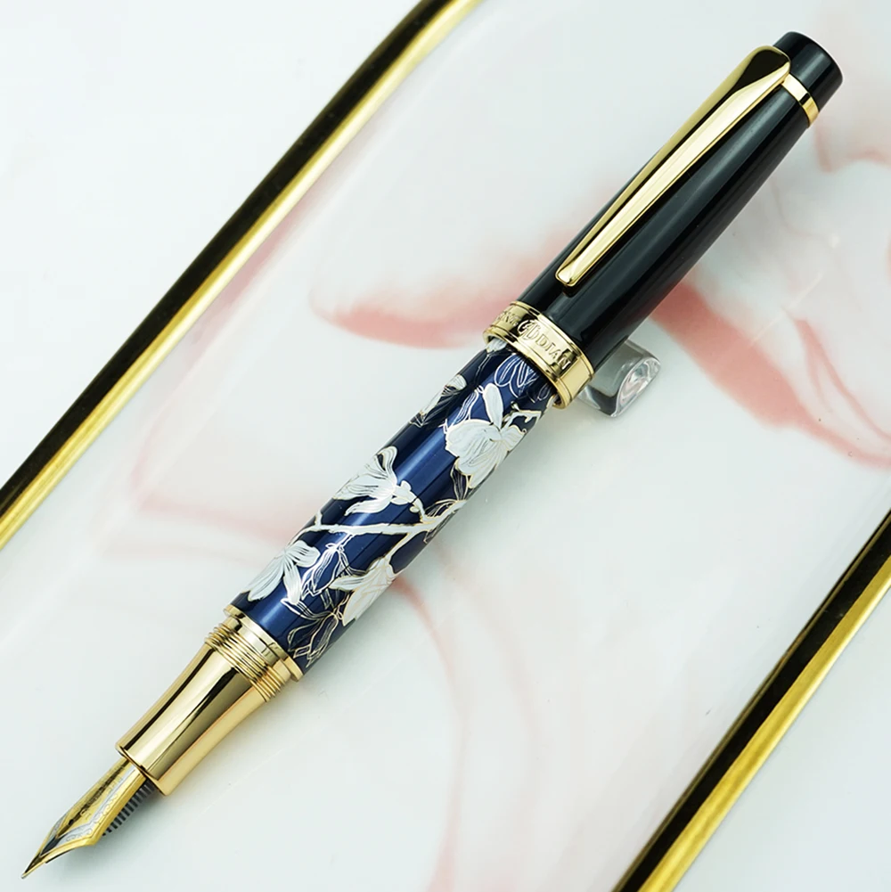 HongDian 1837 металлическая авторучка синие цветы ручной работы китайский стиль иридий EF/F/изогнутое перо чернильная офисная деловая ручка письмо: