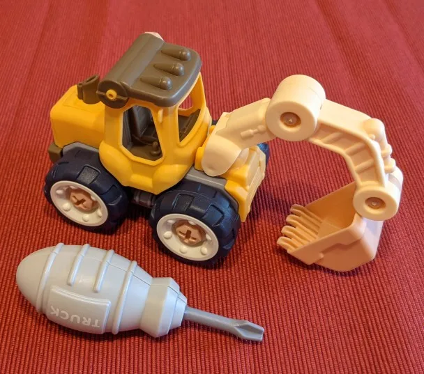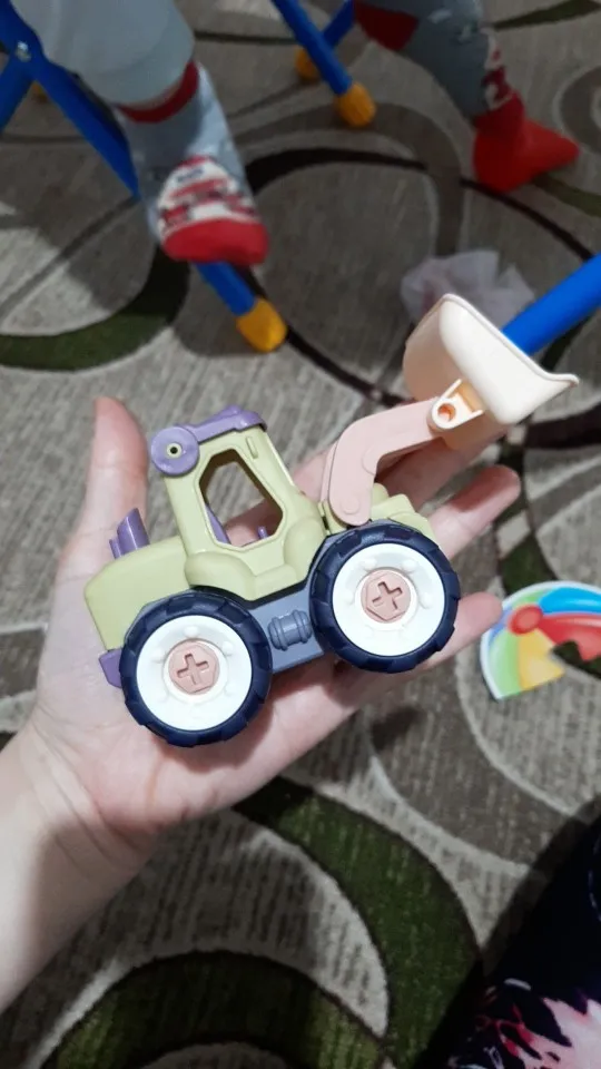 Игрушка классная! Цвет как на картинке. Размер оптимальный. Ребёнок с удовольствием раскручивать отверткой. Колёсики легко крутятся, ковш легко поднимается и фиксируется. Можно гонять по дому.
