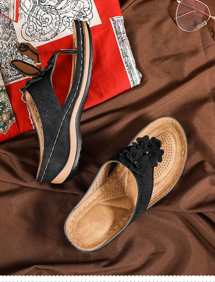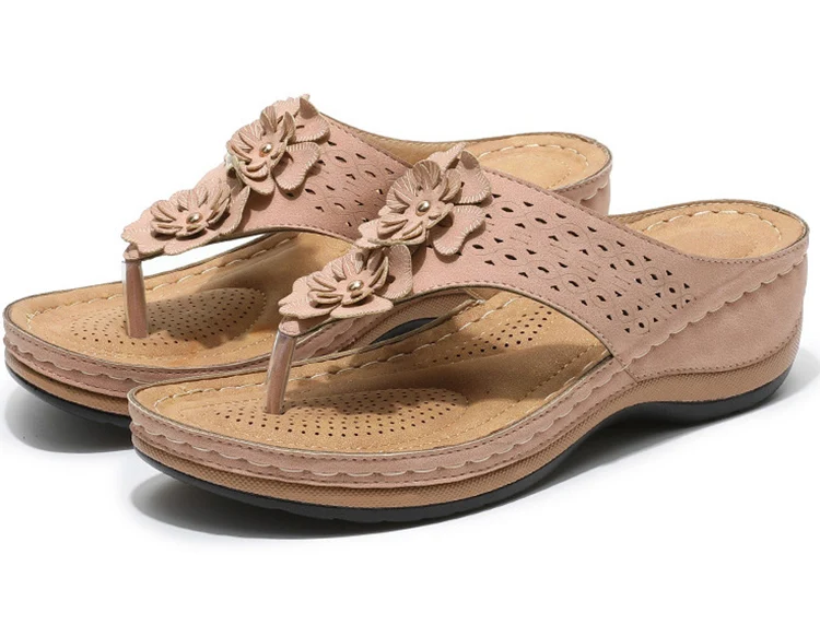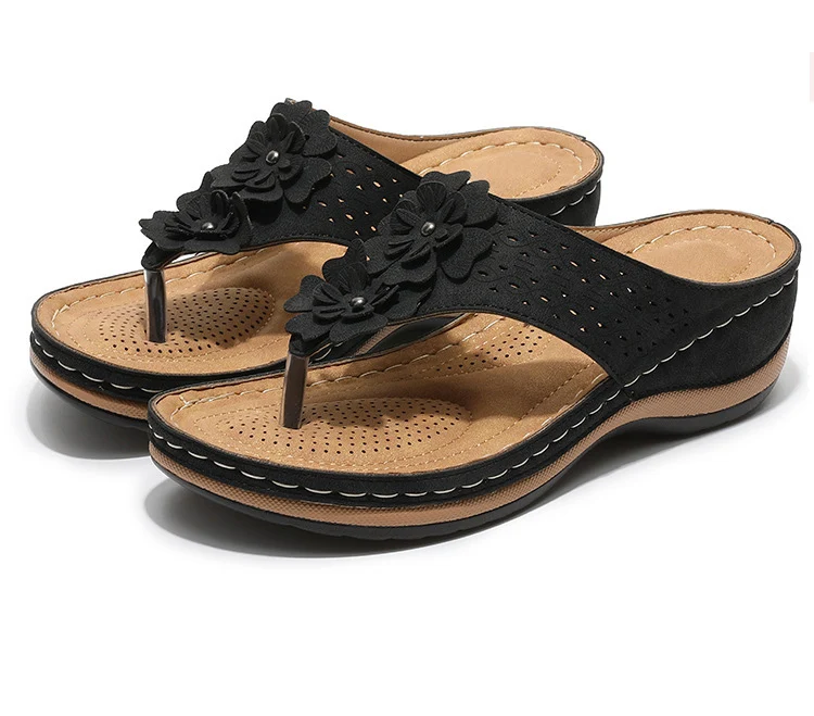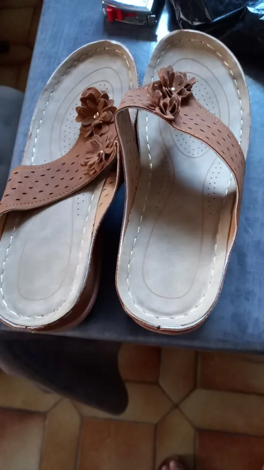 Шлепанцы женские на танкетке, сланцы, цветочный принт, босоножки на низком каблуке, летняя обувь