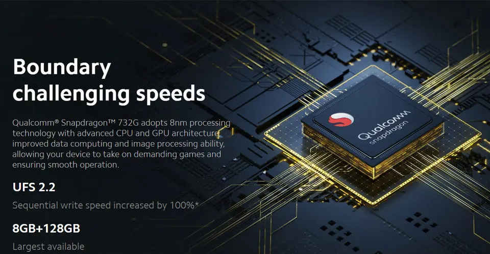 108MP Quad Camera, 6,67 "Amoled 120 Гц дисплей, Qualcomm 732G