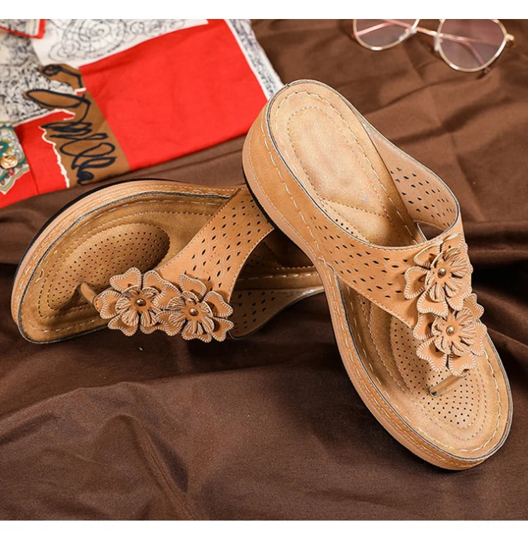 Сандалии женские на платформе, босоножки с цветочным принтом, повседневные туфли на платформе с открытым носом на каблуке, лето 2021