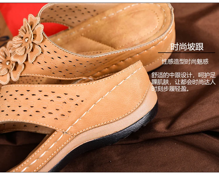 Женские шлепанцы с цветочным принтом, сандалии на платформе и каблуке, 2021, лето Повседневные туфли на платформе с открытым носом