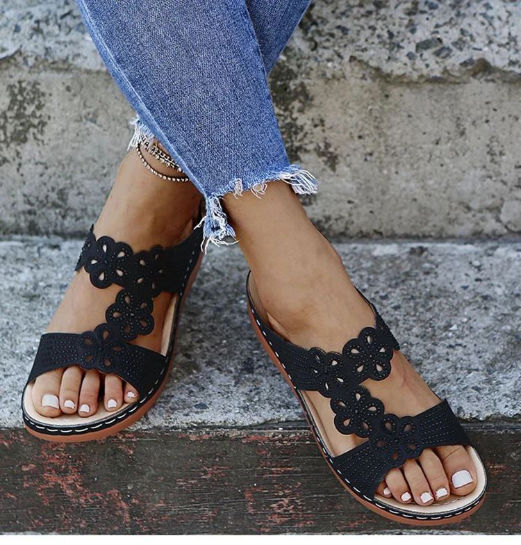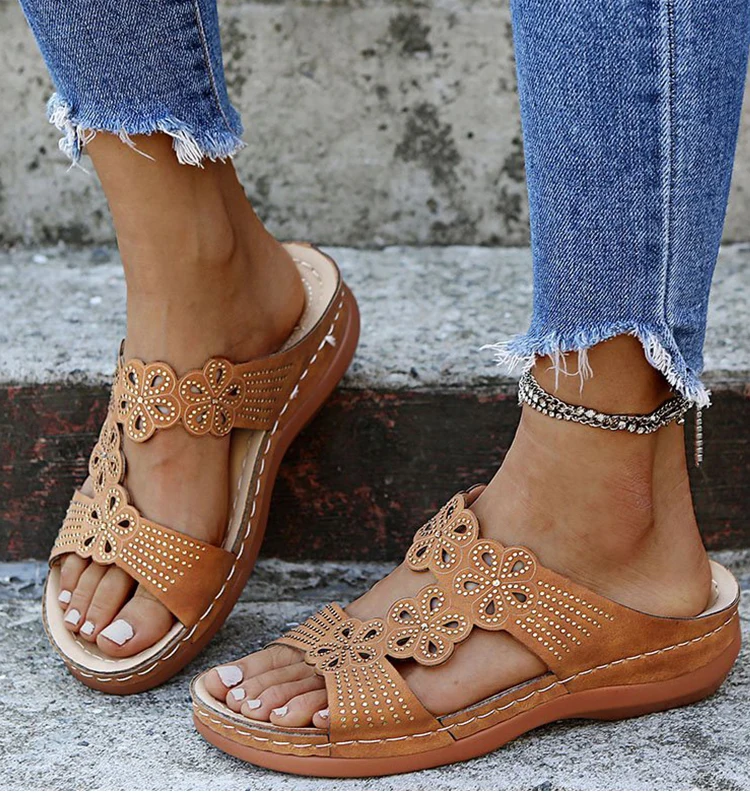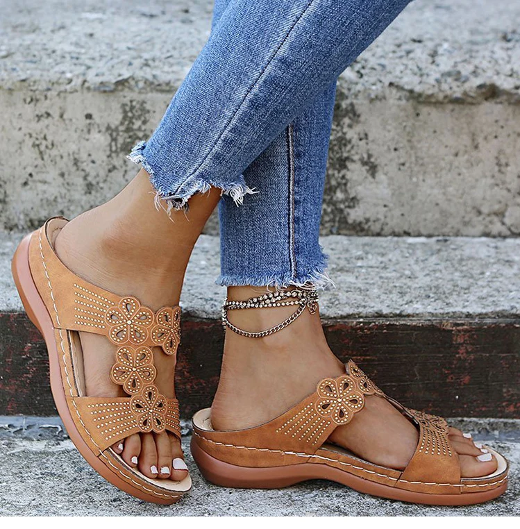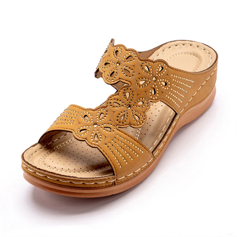 Женские сандалии из мягкой кожи, летняя обувь, женские шлепанцы с р...