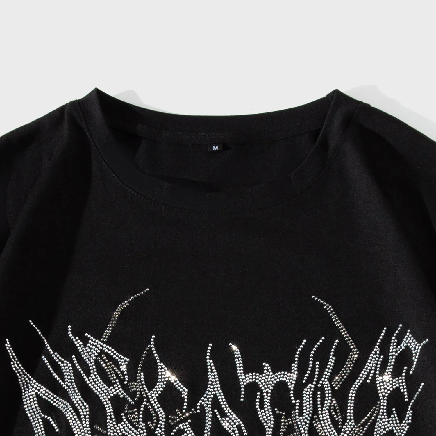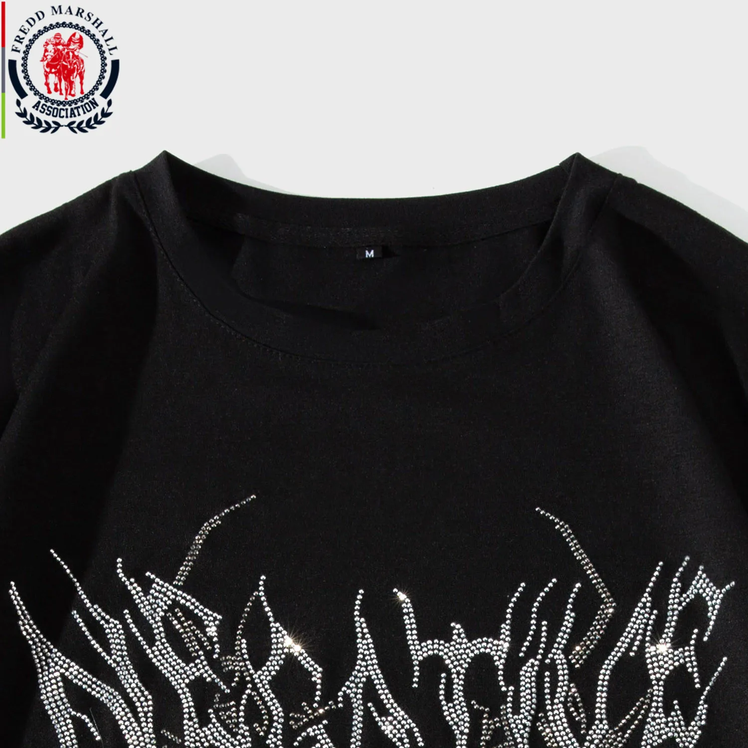 Футболка с коротким рукавом, круглым вырезом и графическим принтом, 2021, футболка со стразами