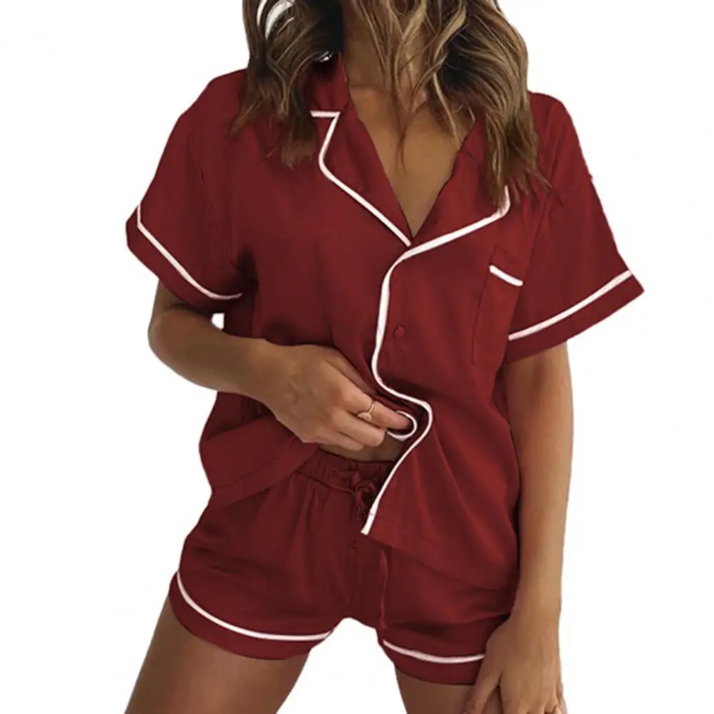 Пижамный комплект из двух предметов с коротким рукавом и шнуровкой, одежда для отдыха, футболка и шорты с отложным воротником, комплект домашней одежды для лета