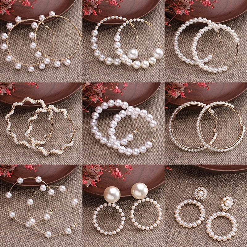 Элегантные белые жемчужные круглые серьги в стиле барокко, мягкие большие серьги-кольца для женщин и девочек, модные золотые металлические серьги-подвески, 2021