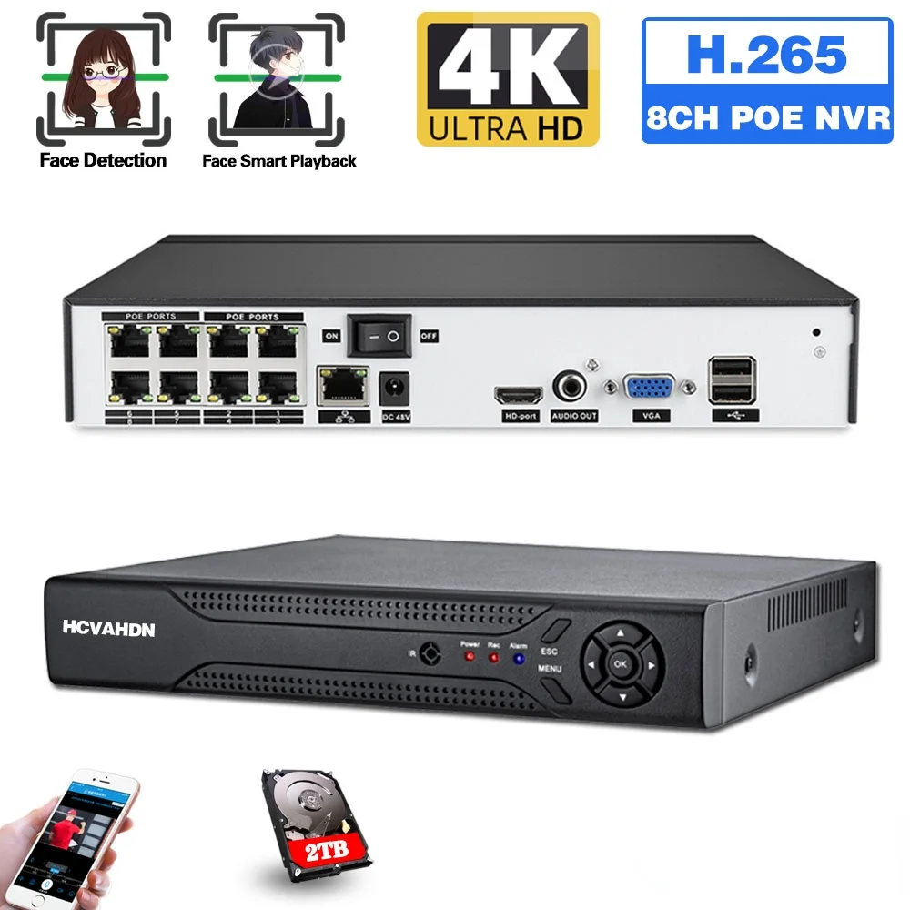 Видеорегистратор 8 каналов, 4K, 8 каналов, POE, H.265, с функцией распознавания лиц, 8 Мп, для IP-камер видеонаблюдения, XMEYE, 4 канала, NVR, 5 Мп