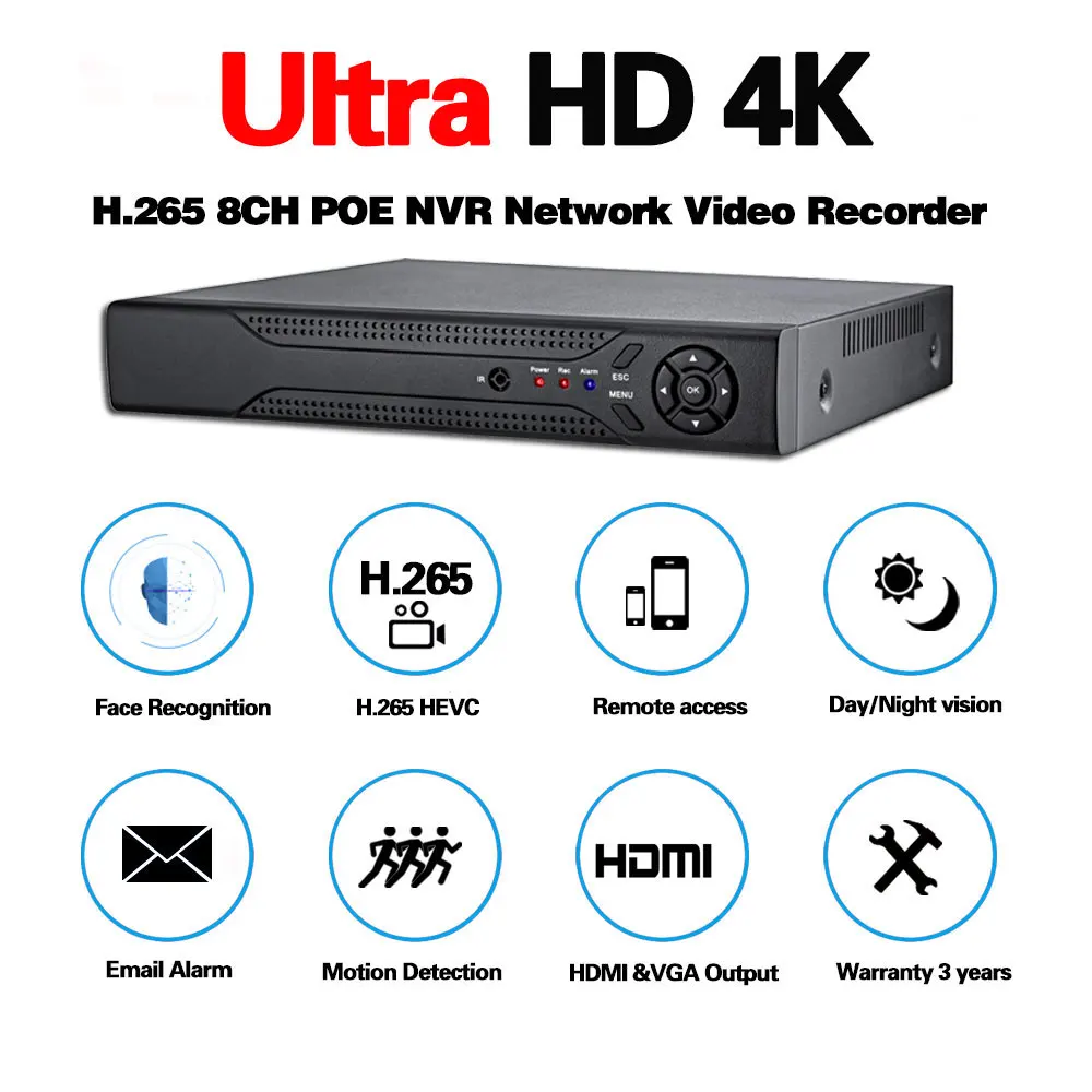 8CH POE NVR ResolutionH.265 8CH 8.0MP POE NVR