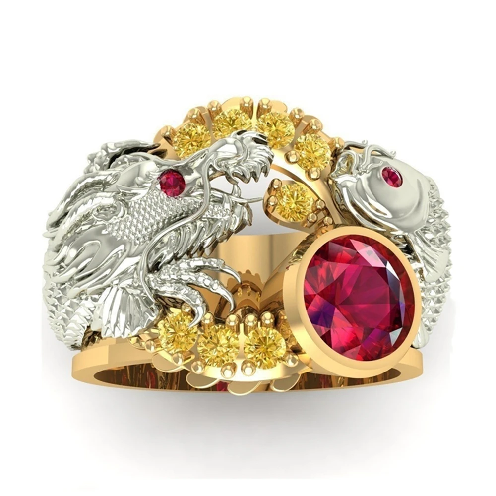 FDLK изысканное двухтонное кольцо Азиатский хороший Дракон Удачи счастливый кои Карп этнический стиль амулет ювелирные изделия подарок на день рождения на годовщину