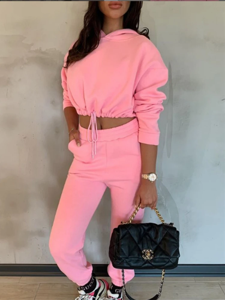 Женская Повседневная однотонная Толстовка с длинным рукавом, брюки,...