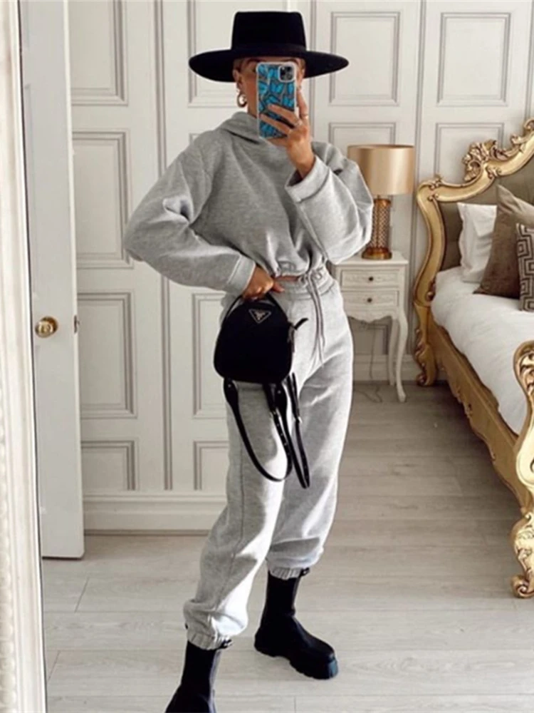 Костюм спортивный женский из двух предметов, свитшот с капюшоном и штаны
