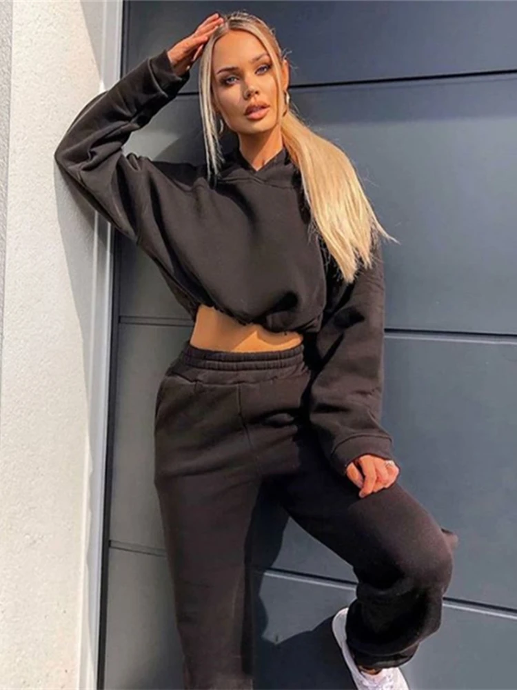 Женские повседневные однотонные комплекты для женщин, теплый свитшо...