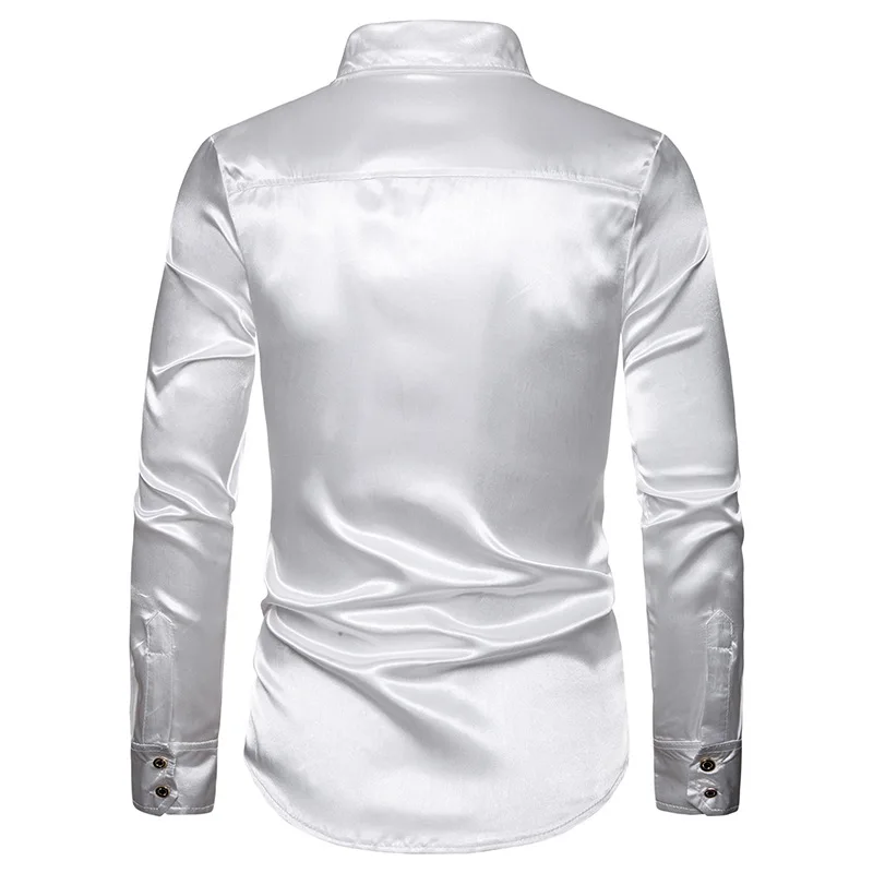 Для мужчин Топ детям сцена танцевальная обувь для ночного клуба, костюм для выпускного Для мужчин Роскошные со сверкающими блёстками рубашки для мальчиков с длинными рукавами из шелкового атласа блестящие диско вечерние рубашка