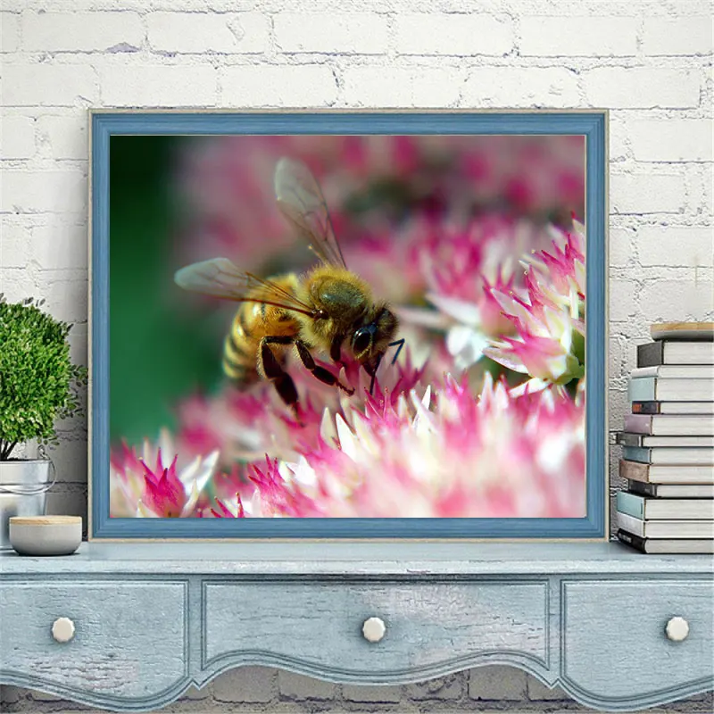 Алмазная картина "сделай сам", вышивка Пчелой, нектар, квадратный животный Алмазный круглые алмазы, настраиваемое настенное художественное украшение