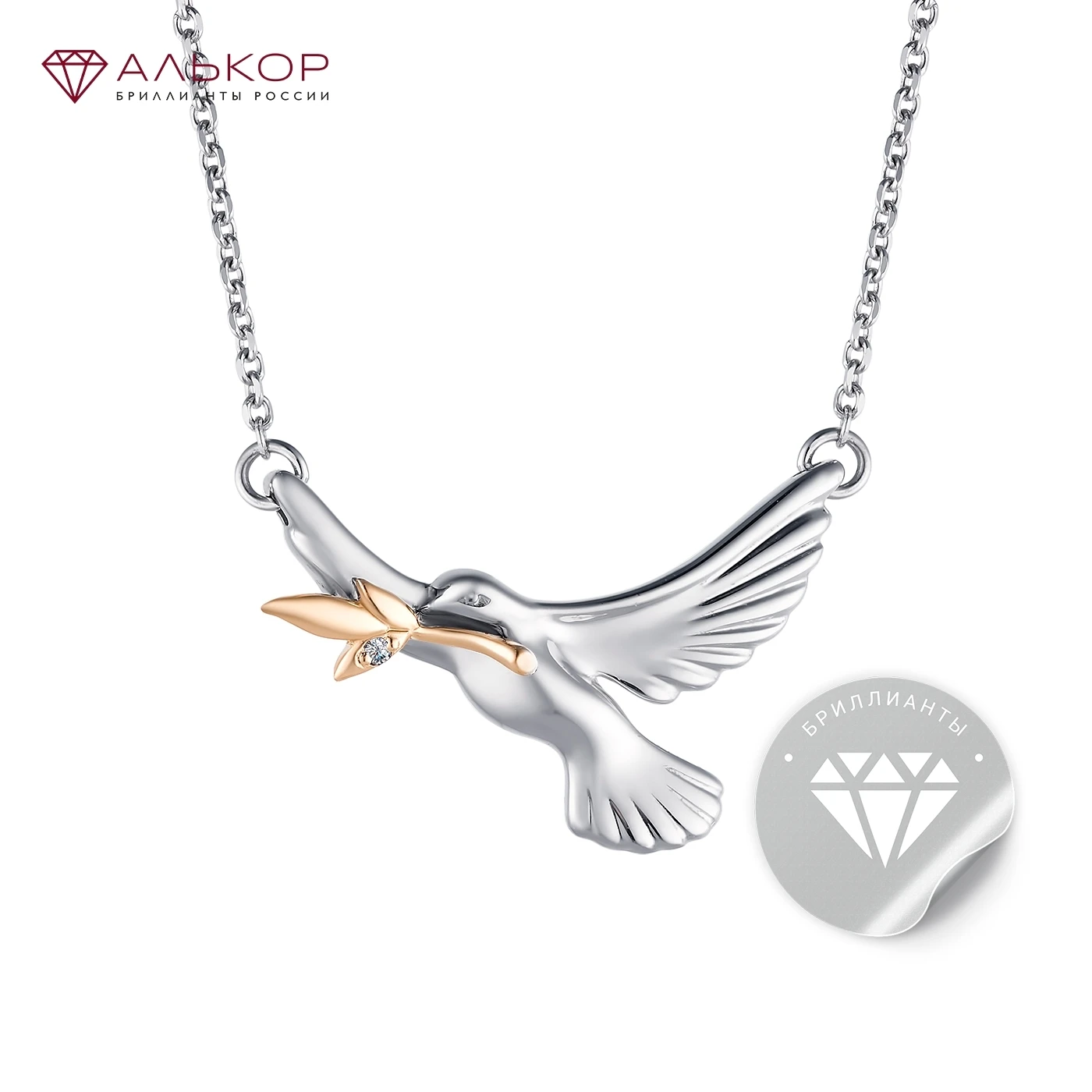 Колье тренд 2021 из серебра 925 с покрытием из родия, природный бриллиант. Бесплатная доставка с ювелирной фабрики в России.