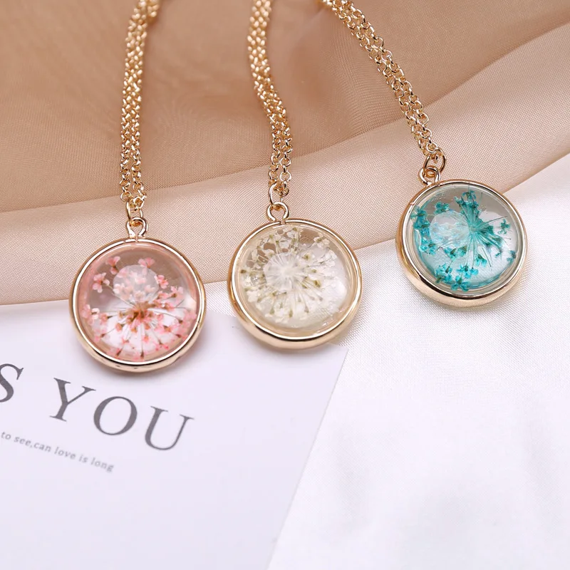 2021 Горячая высушенный цветок прозрачное ожерелье для женщин Микаэла Женская креативная мода ювелирные изделия юбилей день рождения подарок.