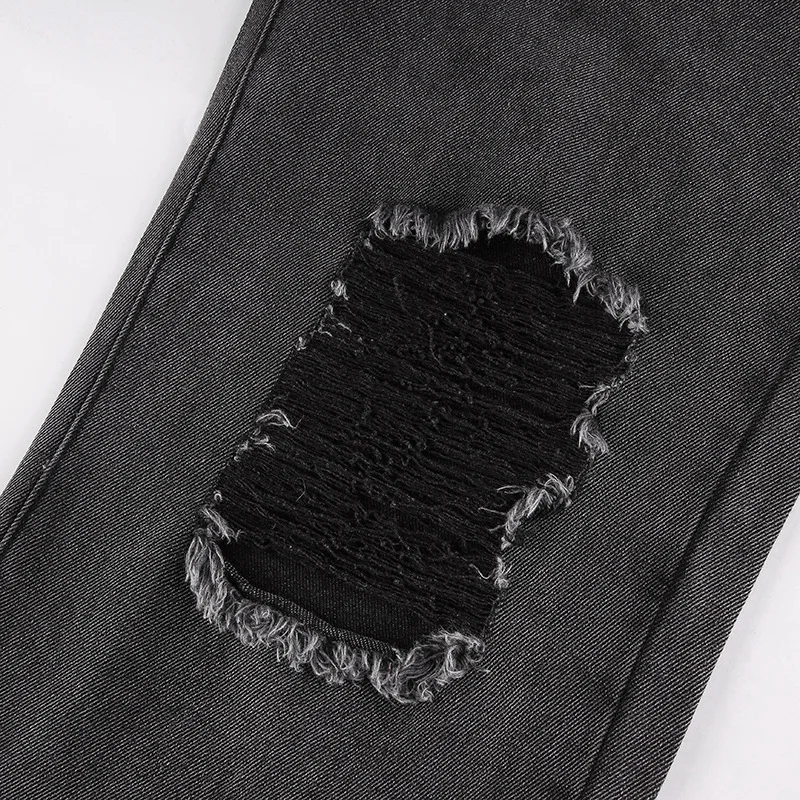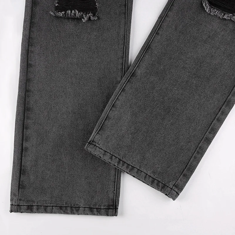 Женские джинсы с широкими штанинами Goth Dark, серые винтажные брюки из денима с высокой талией в стиле гранж-хоп, с дырками, уличная одежда в стиле 90-х, на лето