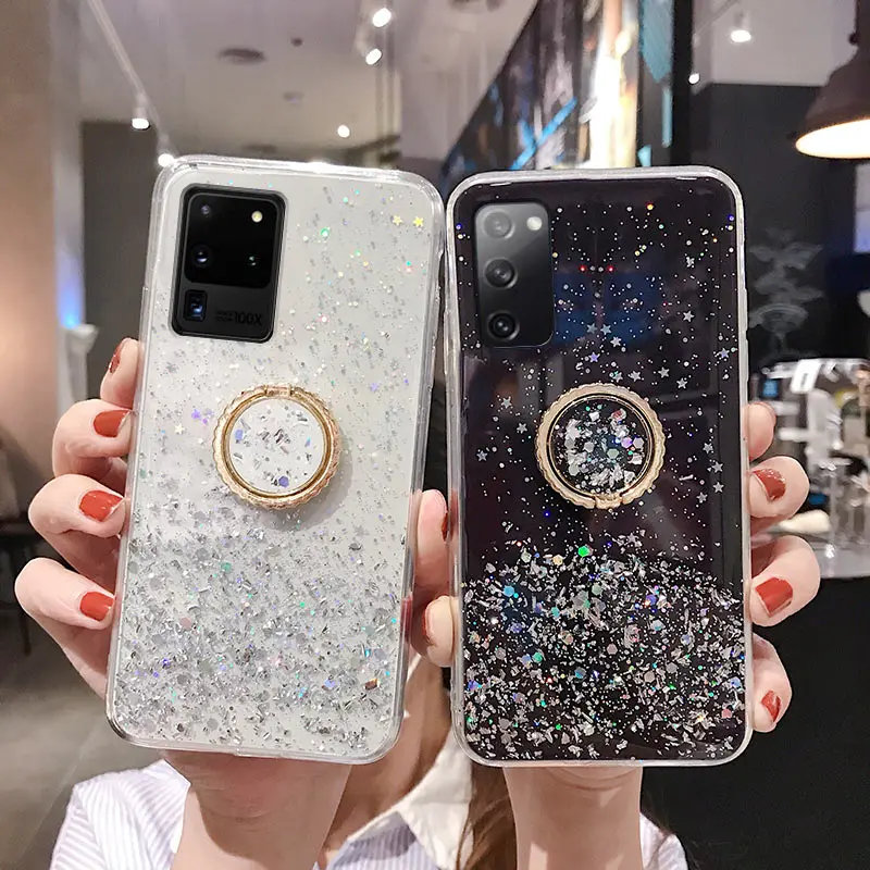 Для Samsung Note 20 Ultra 10 9 8 A51 A71 S8 S9 S10 S20 FE S21 Plus S30 прозрачное блестящее кольцо подставка держатель для телефона чехол бампер
