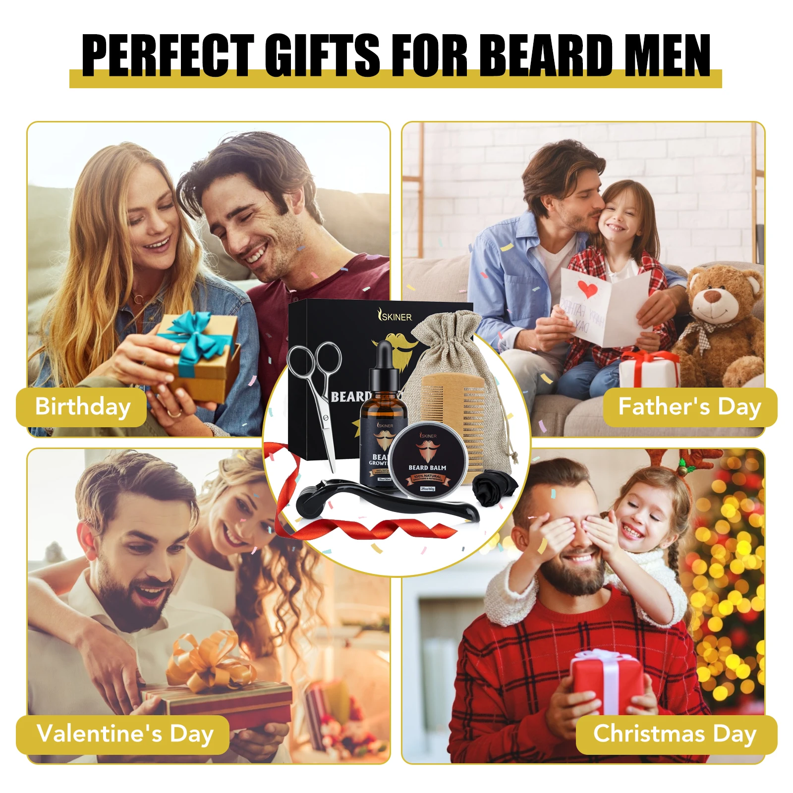 Набор для ухода за бородой для мужчин, 7 шт.компл., натуральное масло для роста, питательный бальзам, Кондиционер для волос, восковые ножницы, ролик для ухода за лицом для мужчин