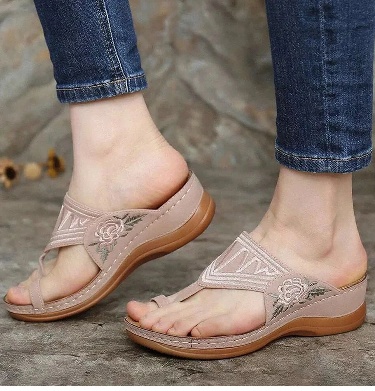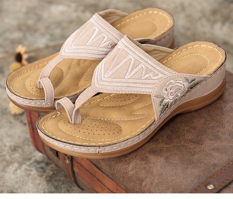 2021 женские сандалии на танкетке; Сандалии на каблуке; Женская обувь с вышивкой; Модные женские сандалии с открытым носком; Женские повседневные Вьетнамки размера плюс