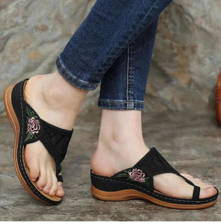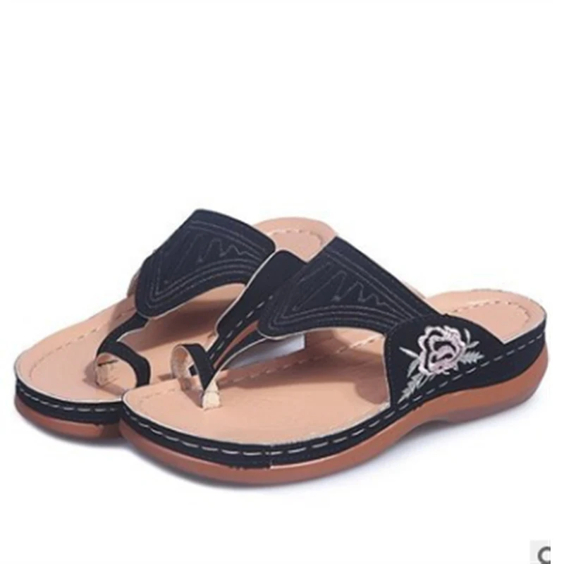2021 босоножки на женские сандалии на танкетке каблуке Женская обувь с вышивкой Модные женские Босоножки с открытым носком женские повседневные шлепанцы размера плюс