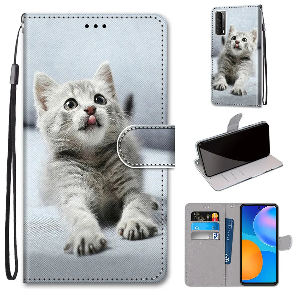 Симпатичный чехол-книжка для Huawei P smart 2021 Y7A Y9A Mate 40 Pro, кожаный чехол-книжка, кошелек для Honor 10X Lite, сумка для телефона с аниме-котом