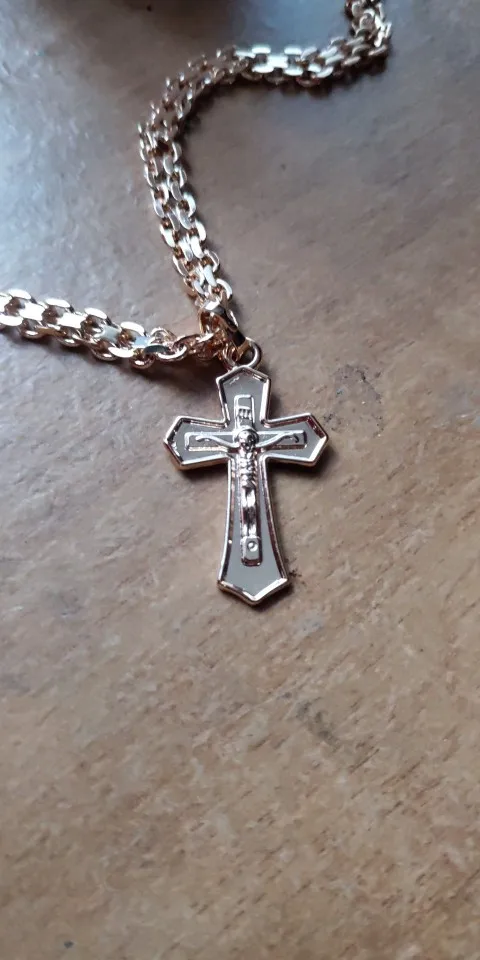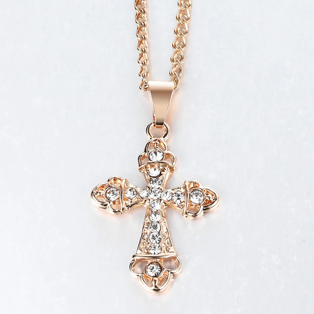 585, Крест из розового золота, ожерелье с кулоном для женщин, молитва, Иисус, змея, Роло, цепочка, распятие, прозрачные хрустальные Ювелирные изделия Подарки, LGP405