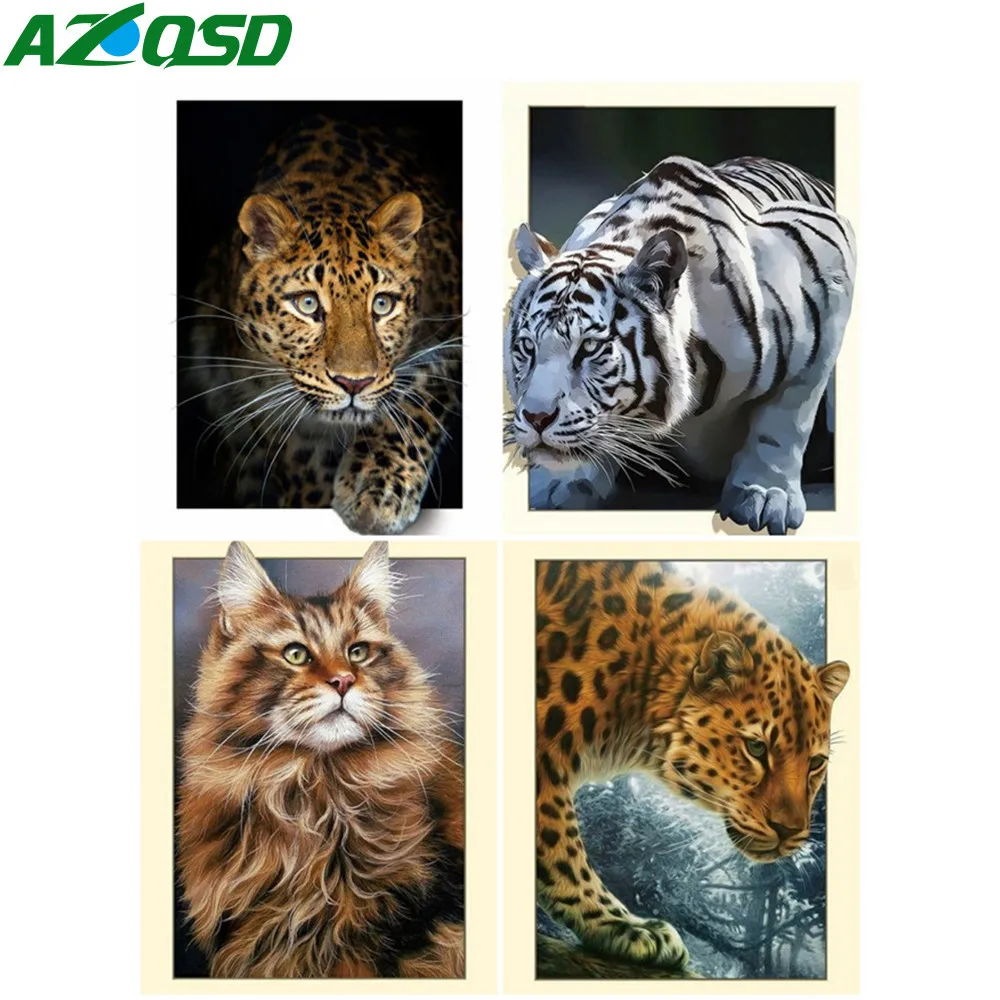 AZQSD Раскраска по номерам в форме леопарда с акриловой живописи уникальный подарок картина по номерам для взрослых Тигр Наборы ручная роспись Декор для дома