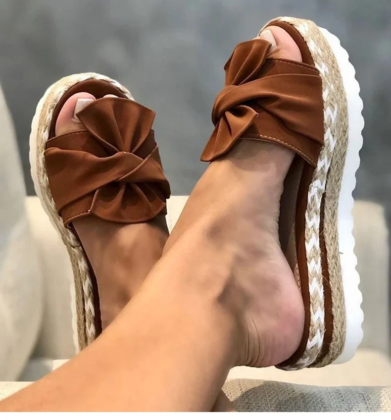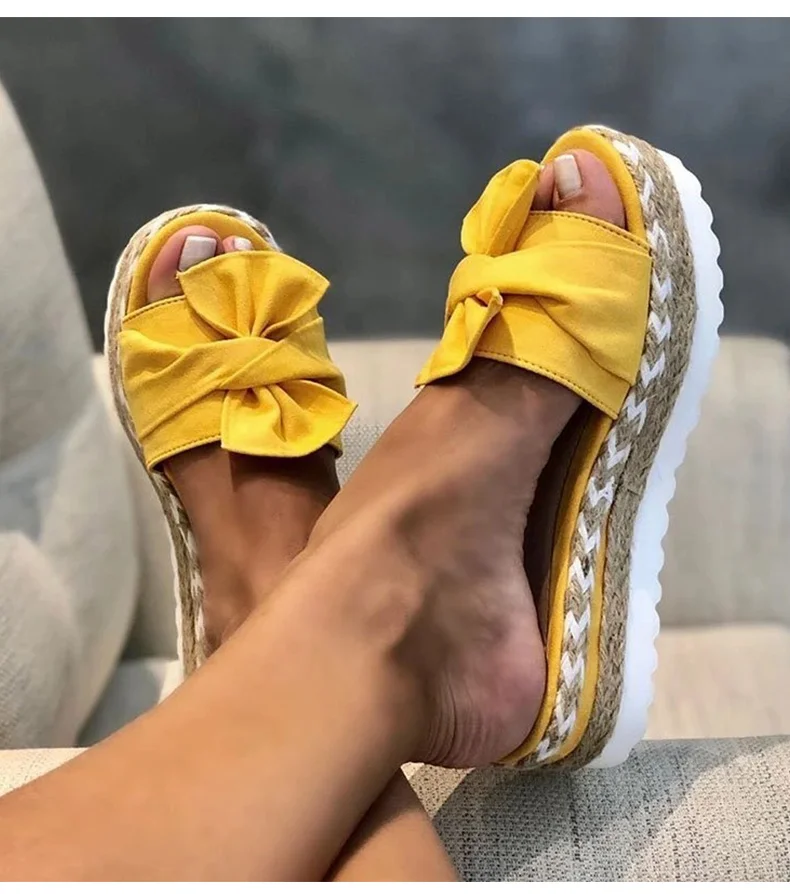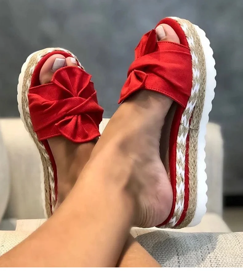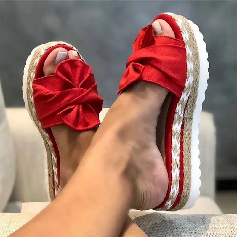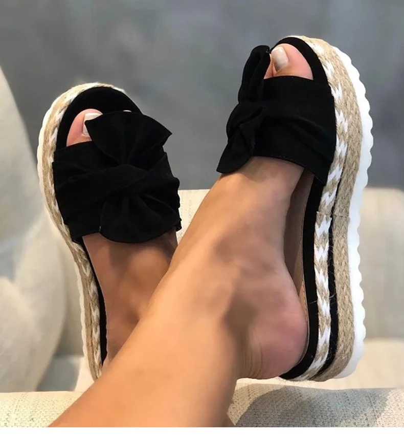 Женские сандалии с бантом, летняя обувь, женские сандалии на платформе, слипоны, туфли на танкетке, женские сандалии на каблуке, женские шлепанцы, размера плюс