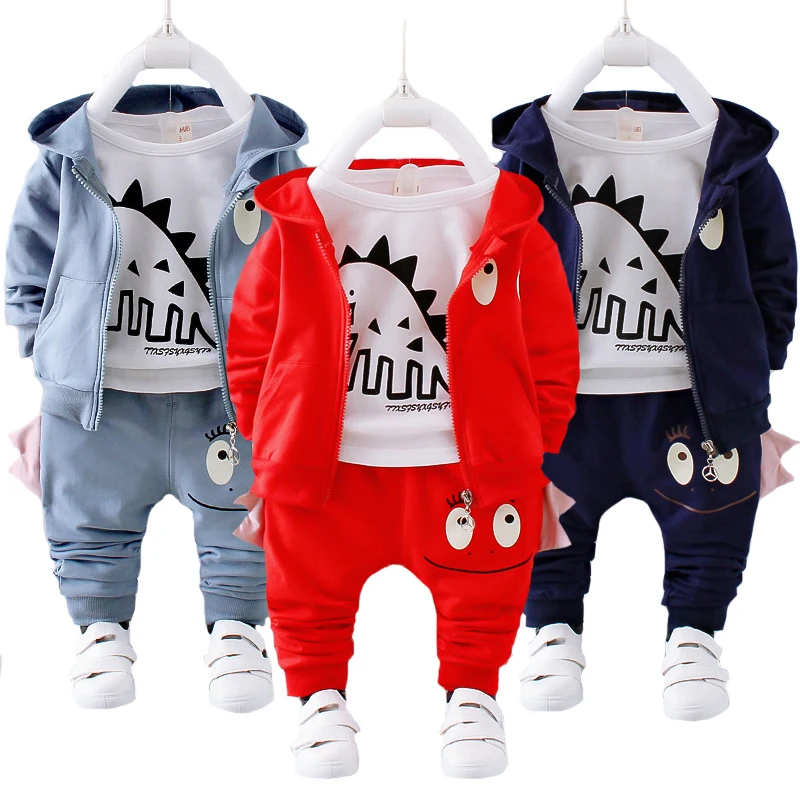 Одежда динозавров для мальчиков с рисунком из мультфильма на весну и чистый, детское хлопковое пальто с капюшоном для девочек + рубашка + штаны, комплект детской одежды из 3 предметов костюм для маленьких детей; Подарок на день рождения