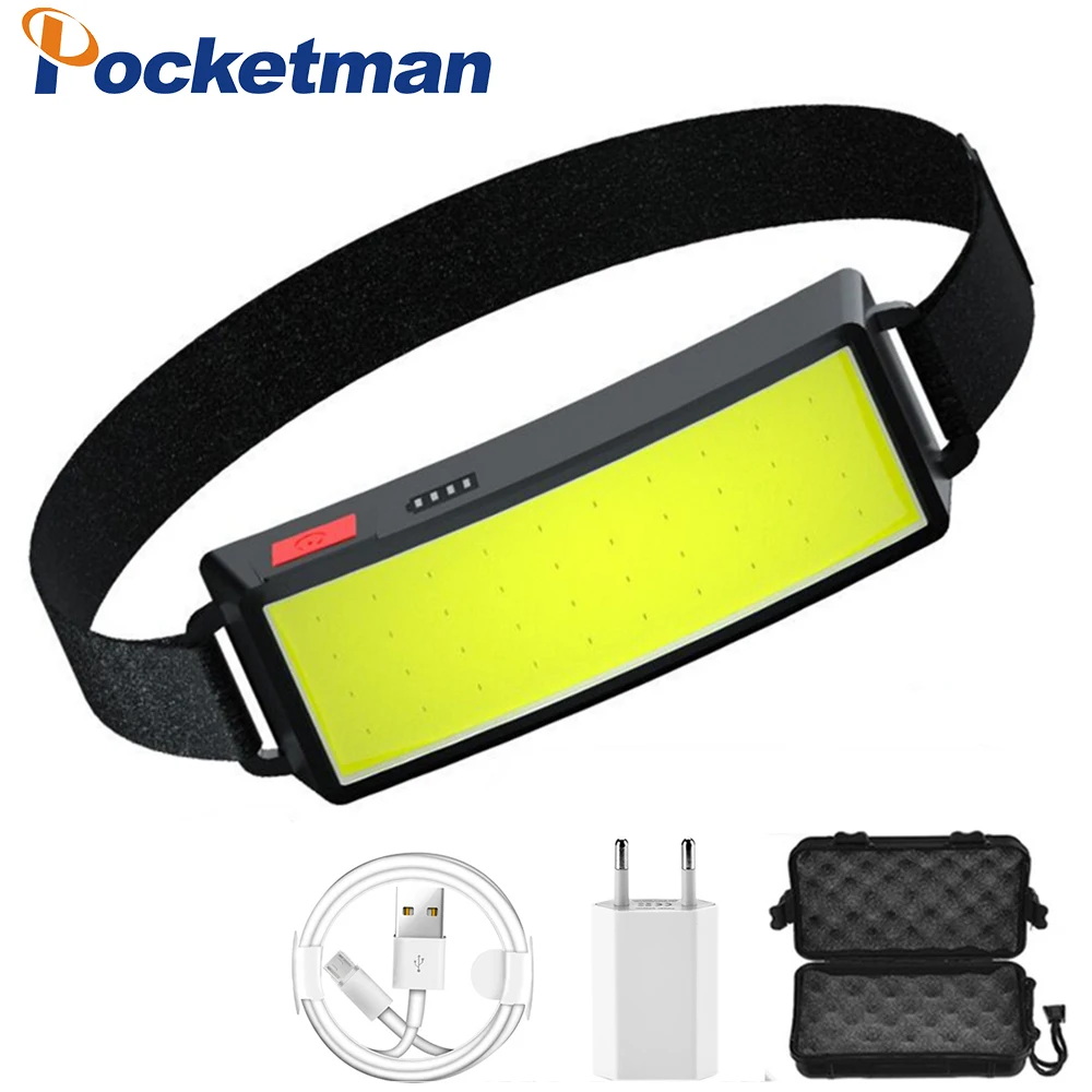 Светодиодный налобный фонарь, портативный светодиодный мини-фонарь COB со встроенным аккумулятором, фонарик с USB-зарядкой, налобный фонарь