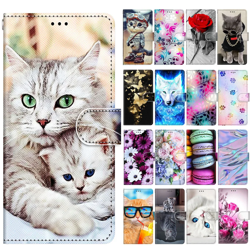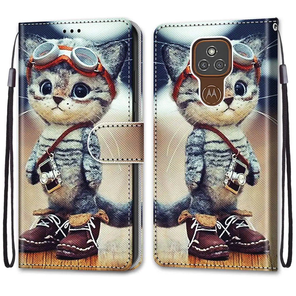 Чехол для телефона Etui Moto E7 Plus Funda Motorola G9 Play, милый чехол-кошелек с собакой, котом, розой, кожаный флип-чехол Magsafe для женщин