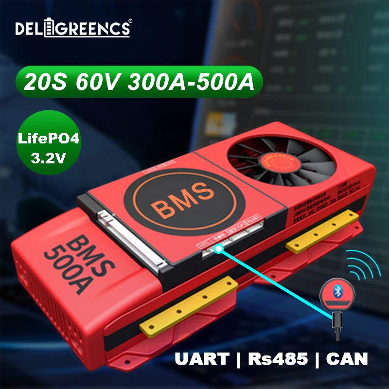 16S 20S 24S 400A LiFePO4 Smart BMS с вентилятором UART RS485 modbus...