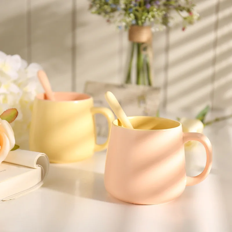 Кружки Clash Color Nordic керамические кофейные чашки с ложкой, матовые кружки для девочек, кружки, кофейные чашки, стакан для чая