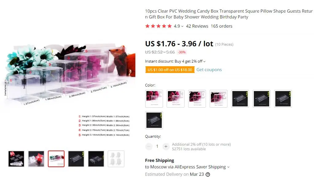 коробочки до России шли более двух месяцев. пластик у коробочек очень мягкий. Рассчитывала, что будет прочнее. продавца рекомендую