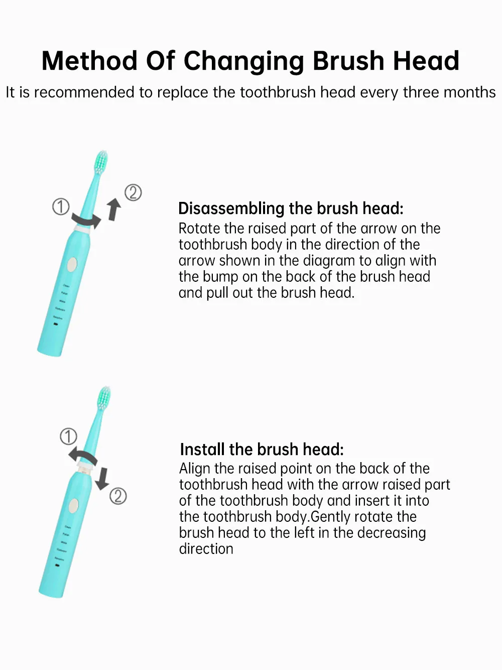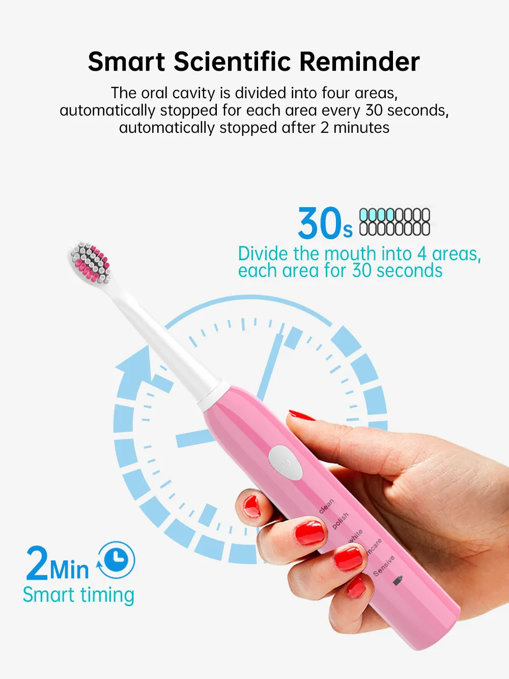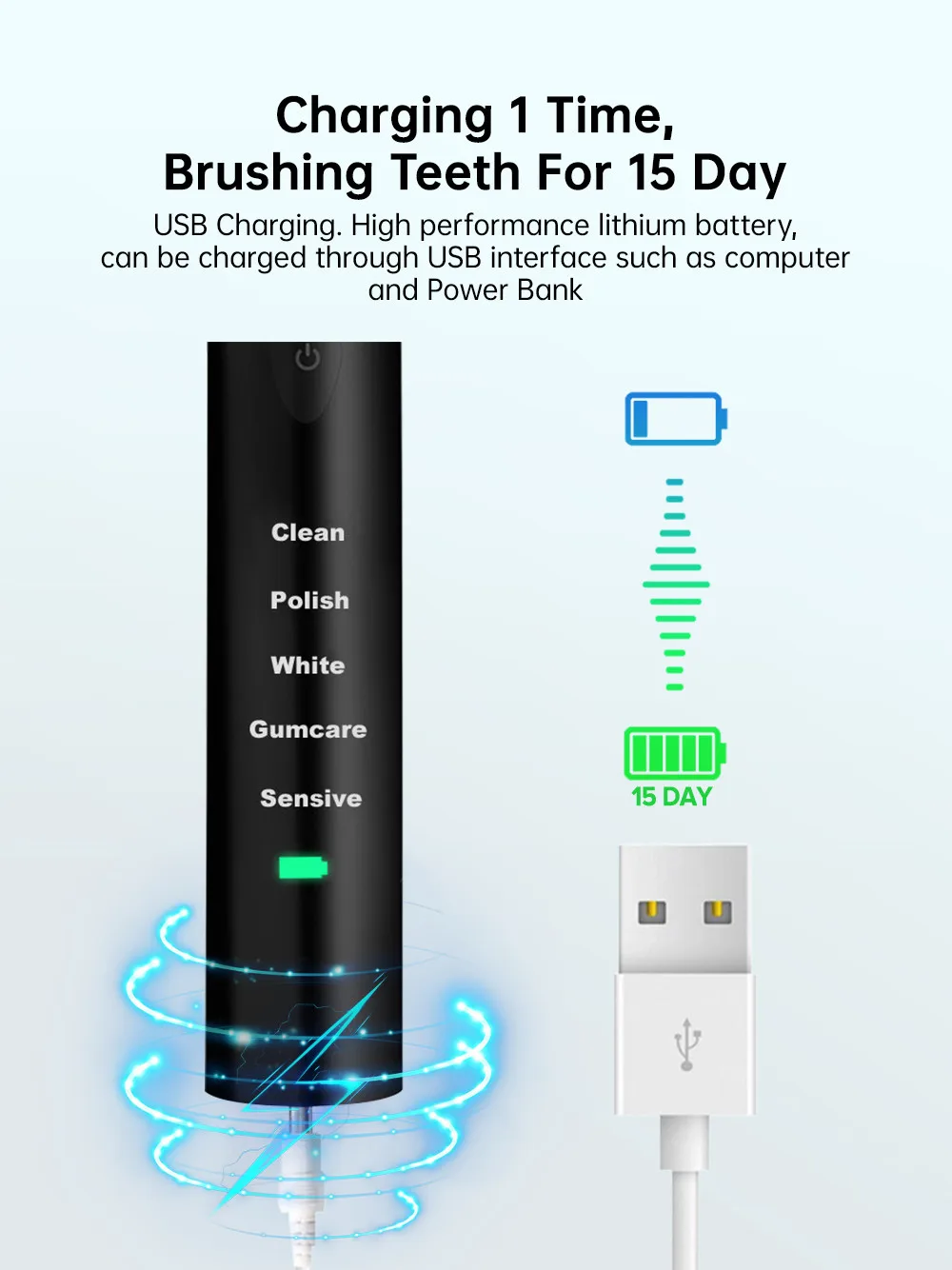 Зубная щетка электрическая звуковая для взрослых, автоматическая Водонепроницаемая быстро заряжаемая с USB, 5 режимов работы