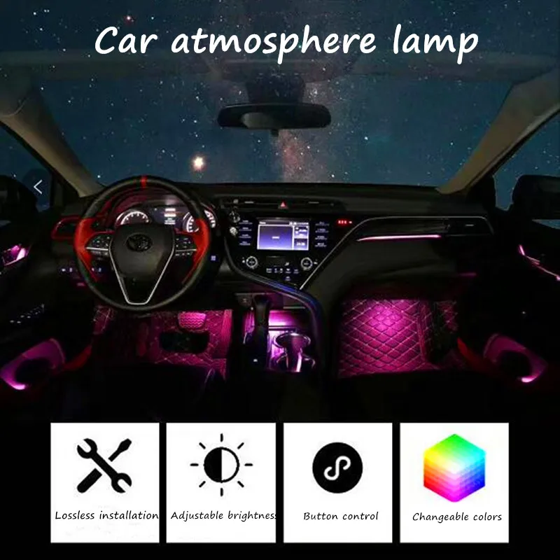 Светодиодная лента 14 в 1 RGB с 8 м для внутренней отделки автомобиля, оптоволоконная светильник та с управлением через приложение, декоративные атмосферные лампы 12 В
