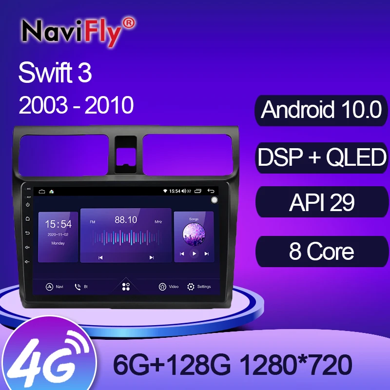 NaviFly 7862 QLED 1280*720 6 ГБ + 128 ГБ Android 10 автомобильный стерео головное устройство GPS мультимедийный плеер для Suzuki Swift 3 2003 - 2010