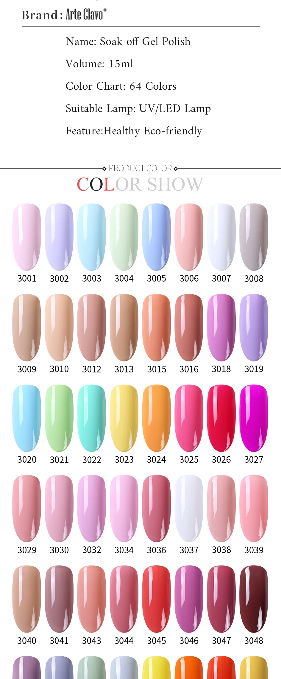 E Clavo Гель-лак для ногтей лак для верхнего и базового покрытия, 15 мл Гель-лак для ногтей УФ светодиодные лампы для ногтей аксессуары 64 Цвета Нейл-арт маникюра! Полупостоянная