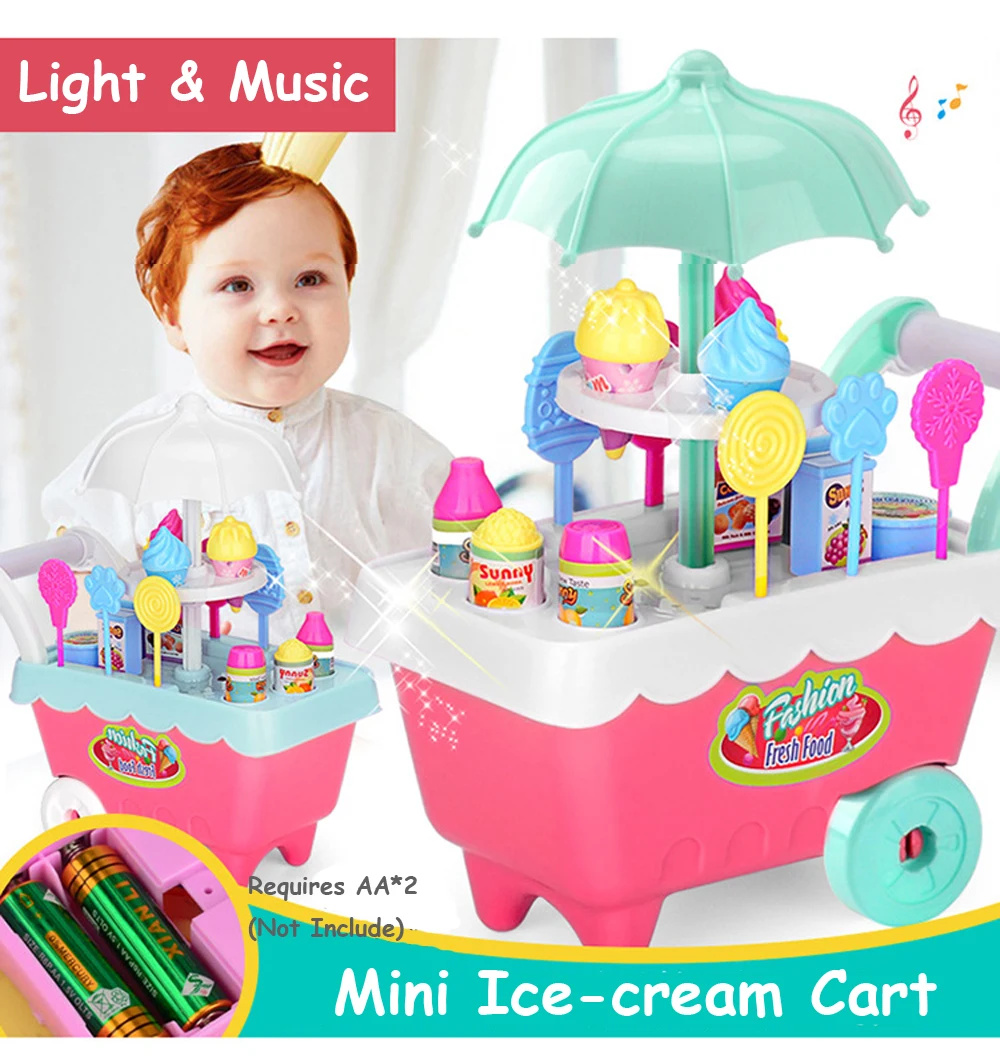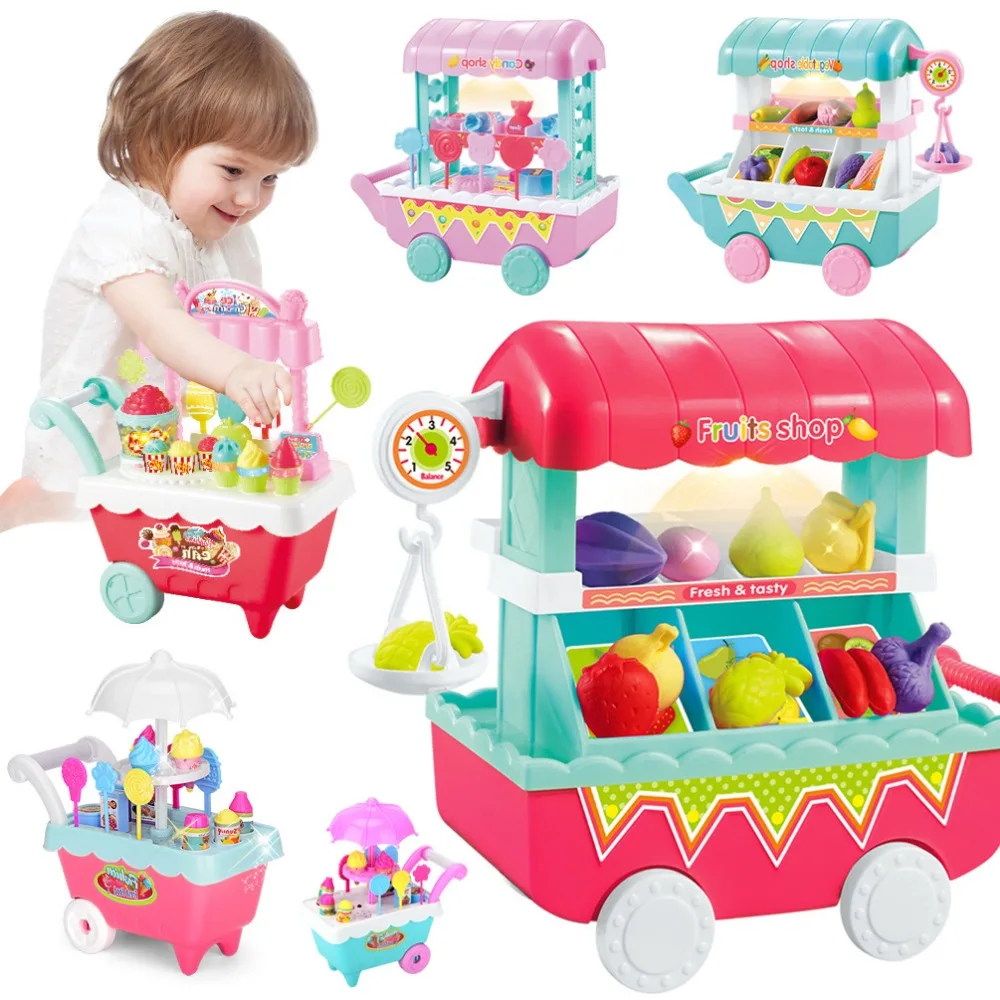 Детские игрушки для ролевых игр сделай сам, мини-игрушки для мороженогоконфетфруктововощей, корзина для покупок с подсветкой и музыкой, ролевые игрушки для детей, подарок